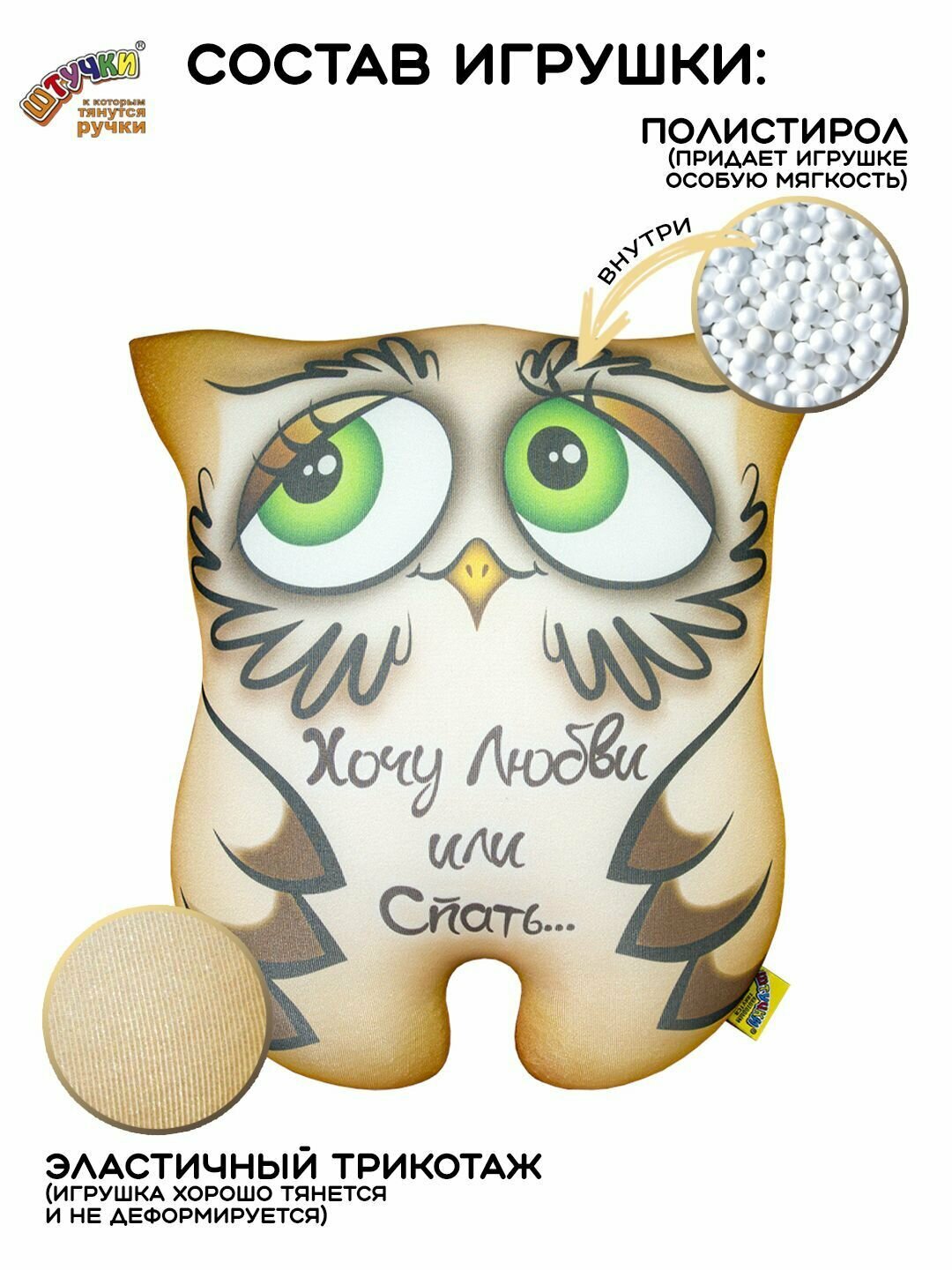 Купить Штучки, к которым тянутся ручки/ Мягкая игрушка-открытка антистресс Совушка "Хочу любви", 26х26 см