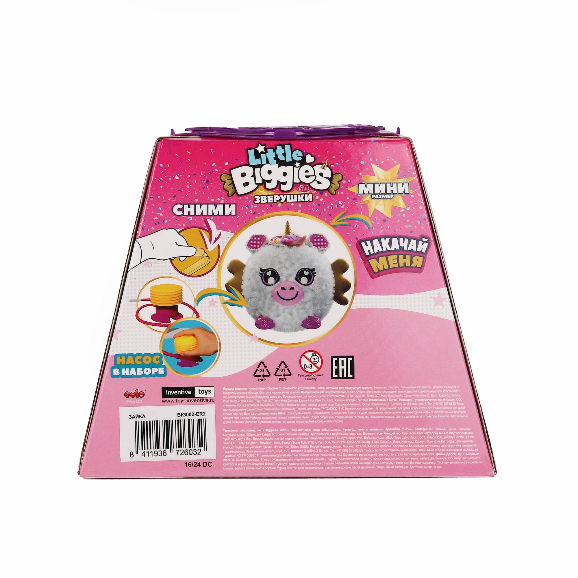 Мягкая игрушка - мяч BIGGIES BIG002-UN мини надувной зверёк шар - единорог с насосом в наборе