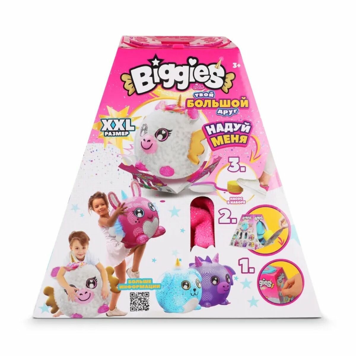 Мягкая игрушка - мяч BIGGIES BIG002-UN мини надувной зверёк шар - единорог с насосом в наборе