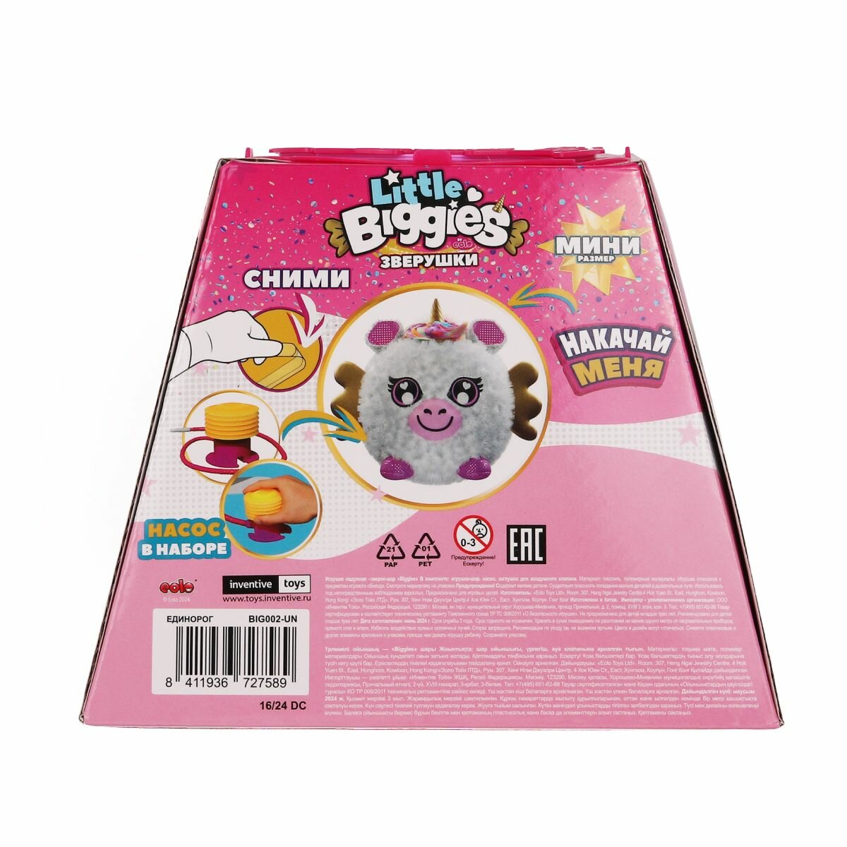 Купить Мягкая игрушка - мяч BIGGIES BIG002-UN мини надувной зверёк шар - единорог с насосом в наборе