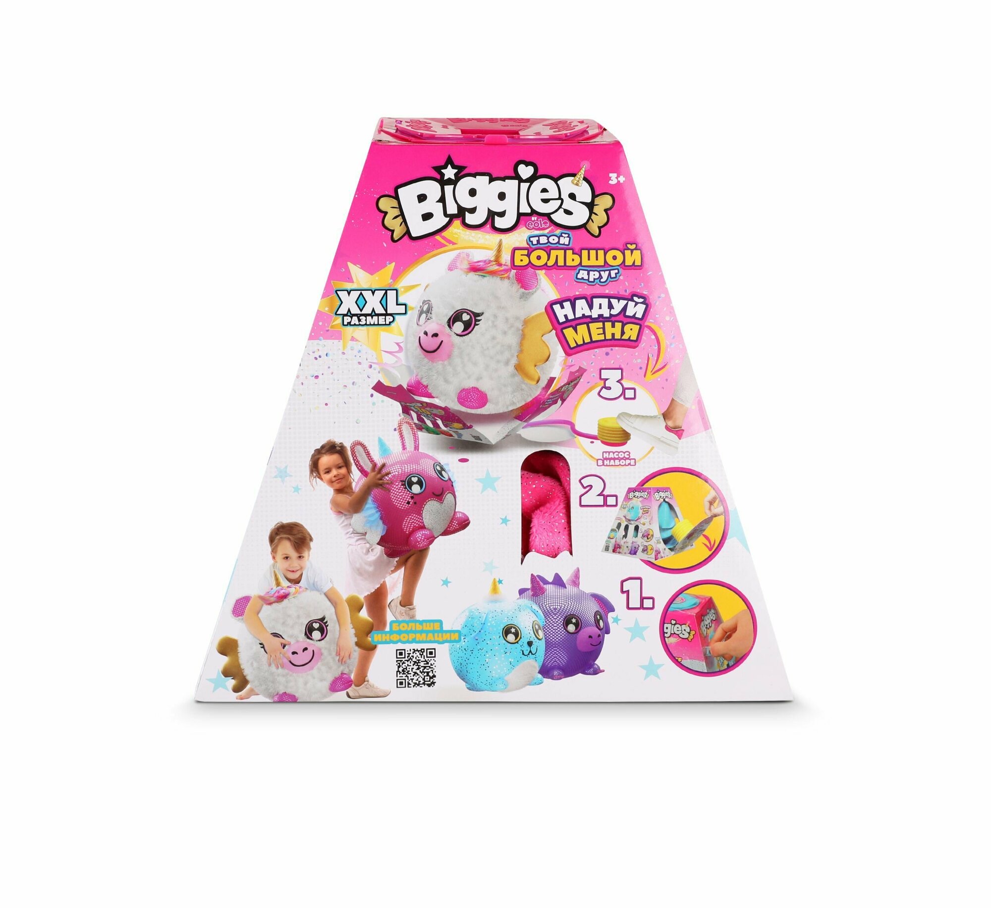 Мягкая игрушка - мяч BIGGIES BIG002-UN мини надувной зверёк шар - единорог с насосом в наборе
