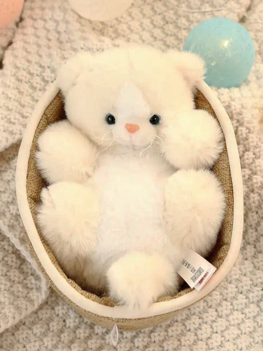 Купить Мягкая Игрушка антистресс - Котёнок в корзинке 25 см