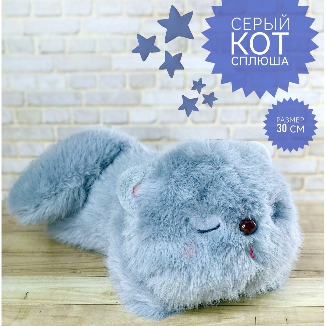Мягкая игрушка Кот Сплюшка серый 30 см интересное: