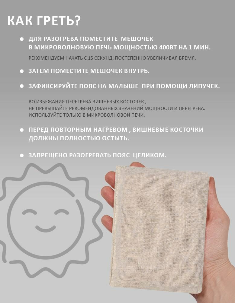 Пояс грелка для новорожденных от коликов с вишневыми косточками Зайка интересное: