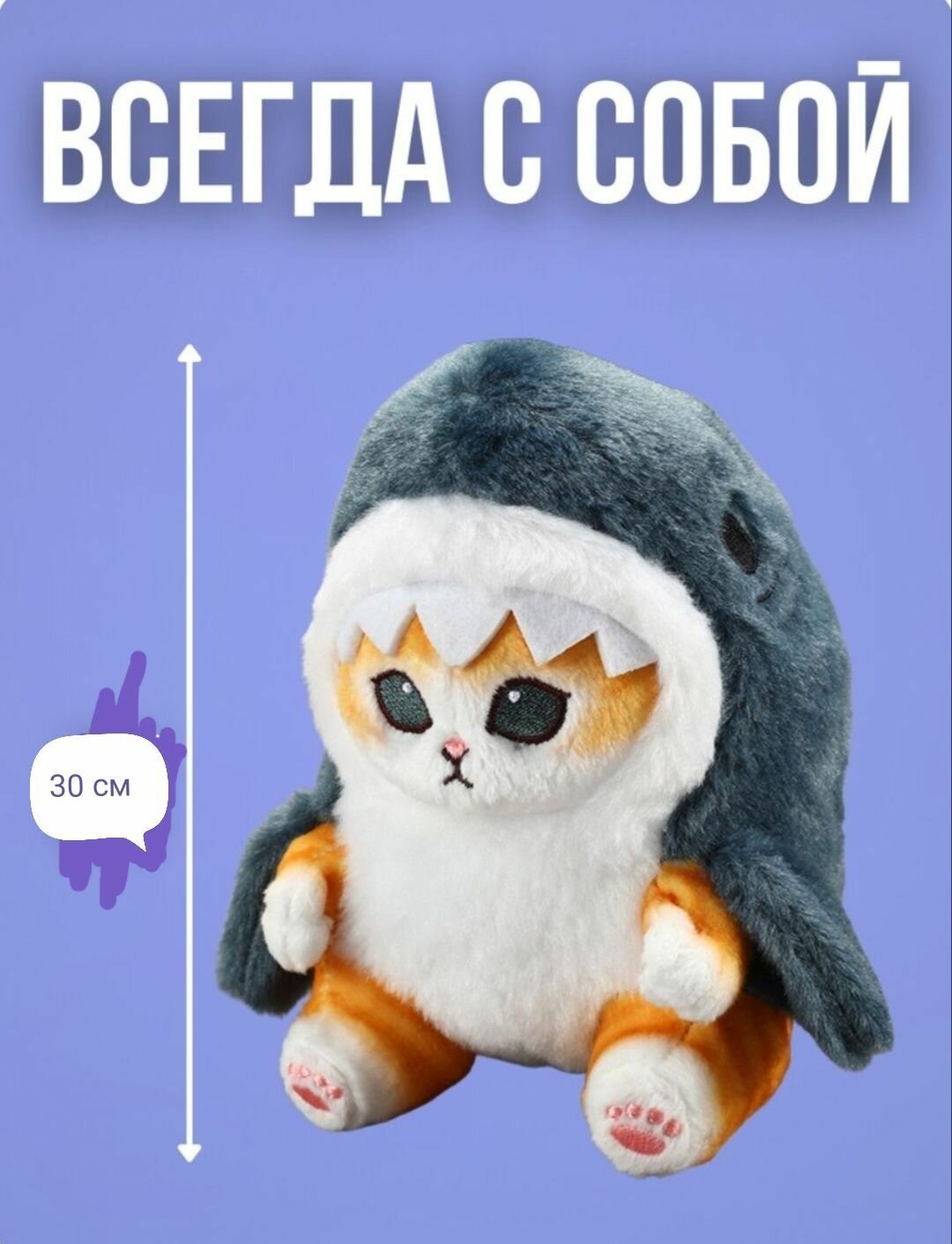 Мягкая игрушка кот акула, антистресс игрушка,30 см, котёнок в костюме акулы, тренд 2023 интересное: