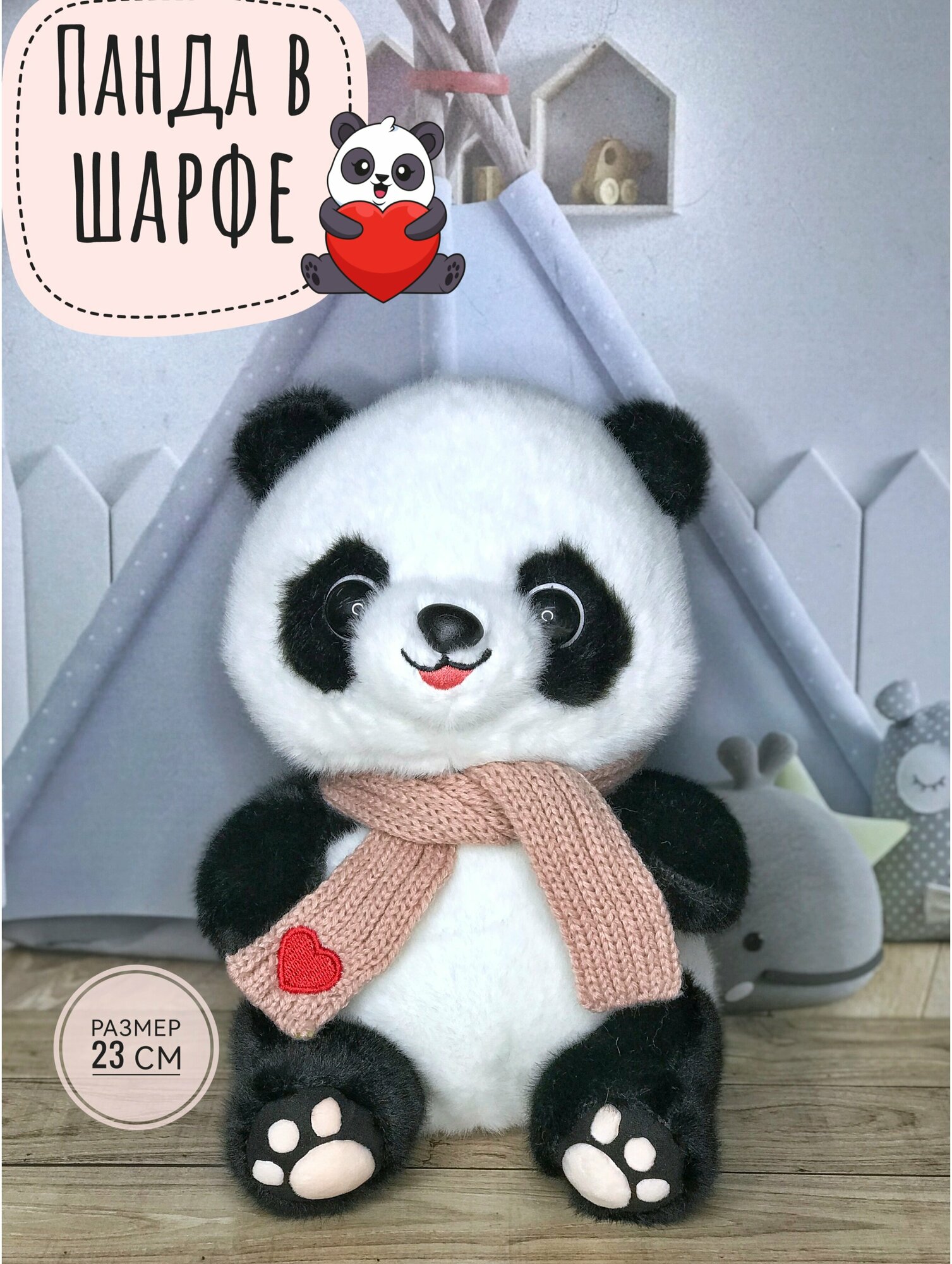 Купить Мягкая игрушка Панда в розовом шарфе 23 см