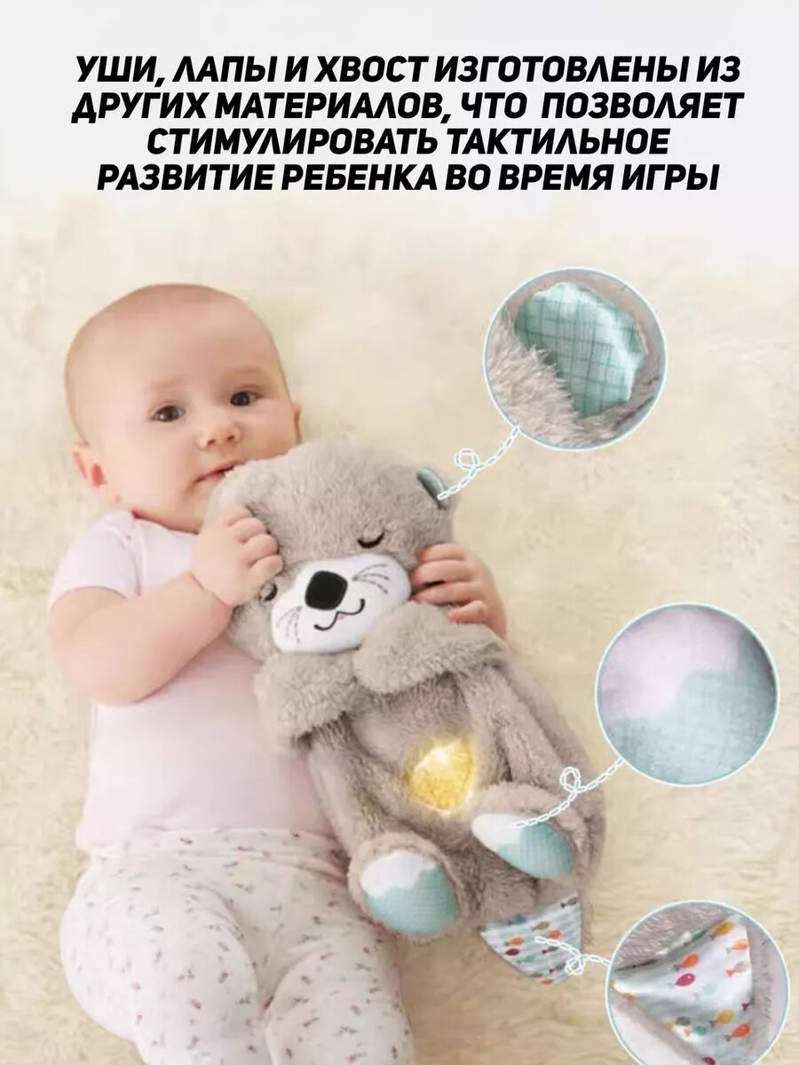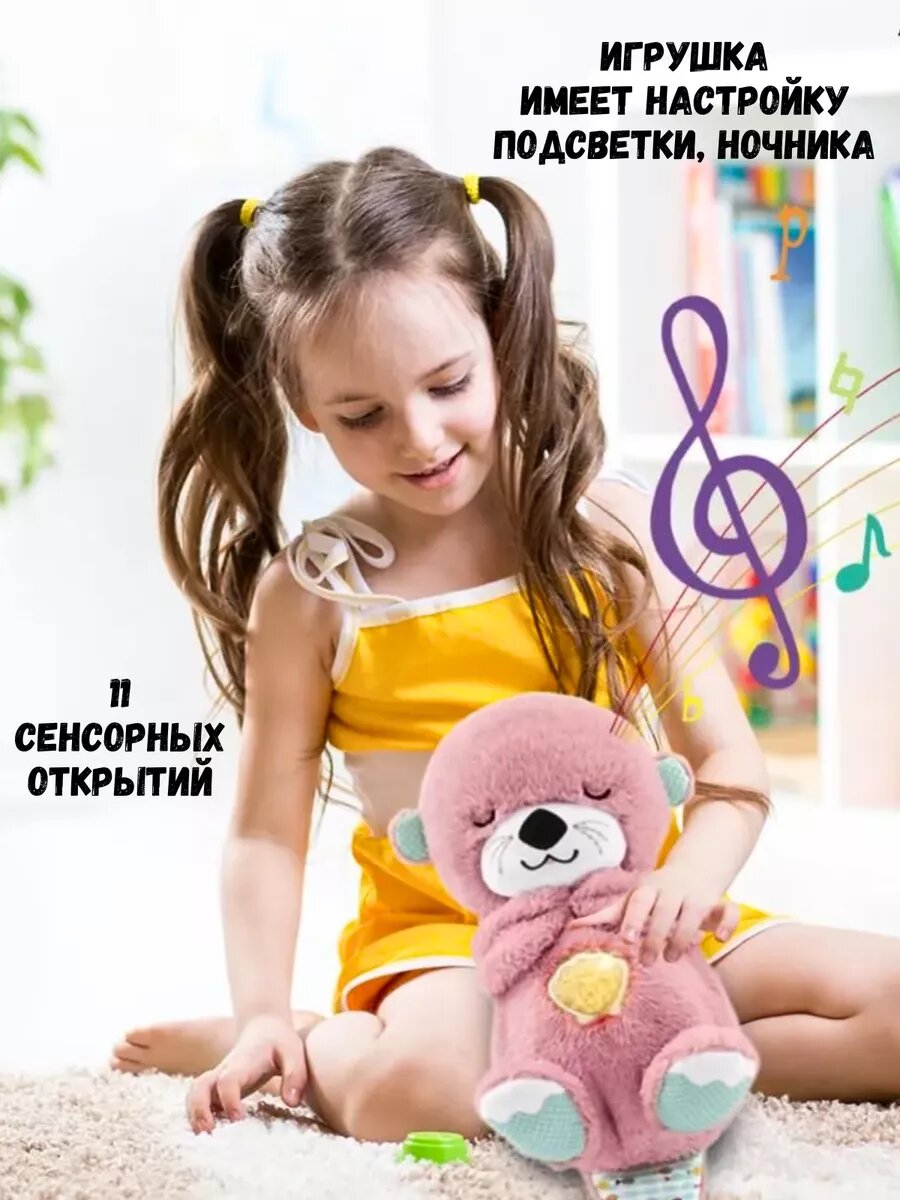 Музыкальная игрушка Спящая Выдра / Плюшевая детская игрушка для сна, 32 см розовая интересное:
