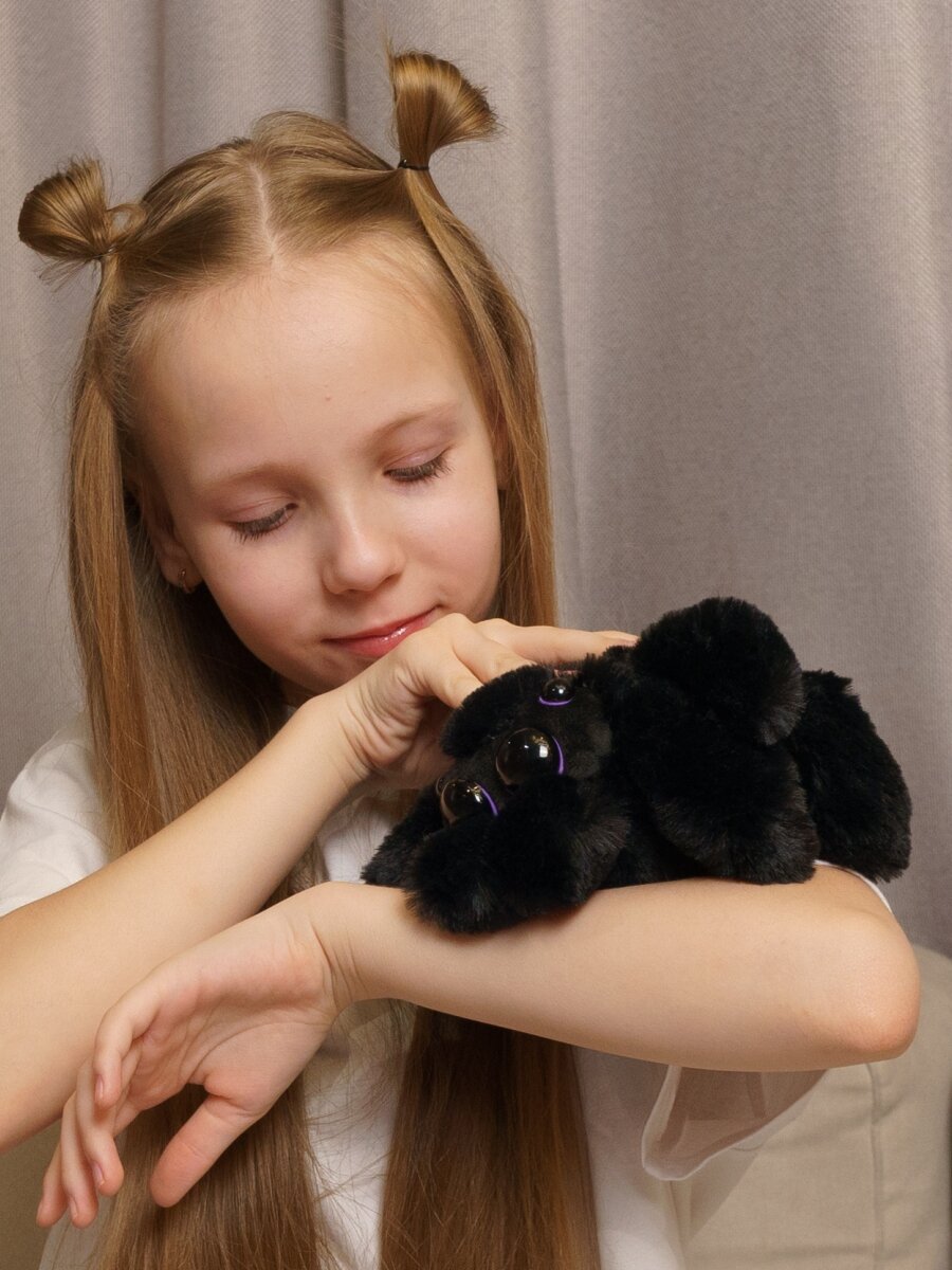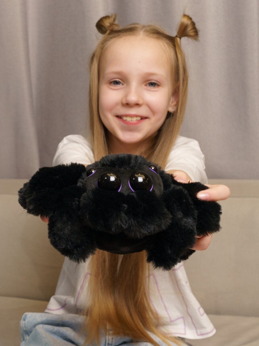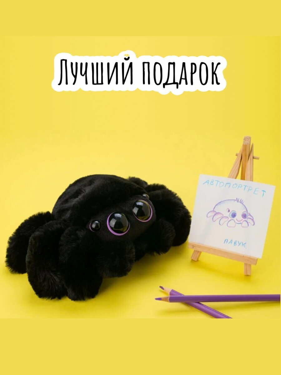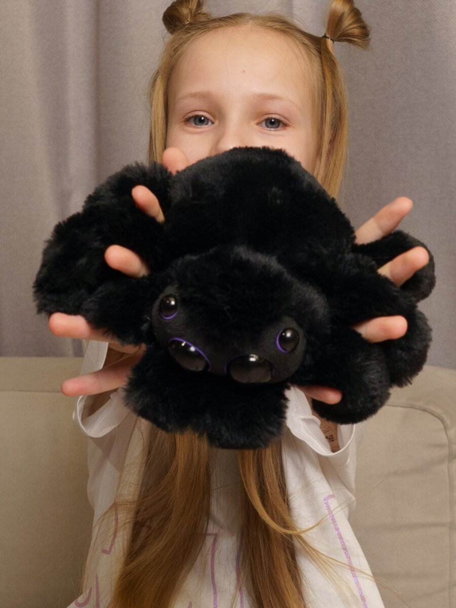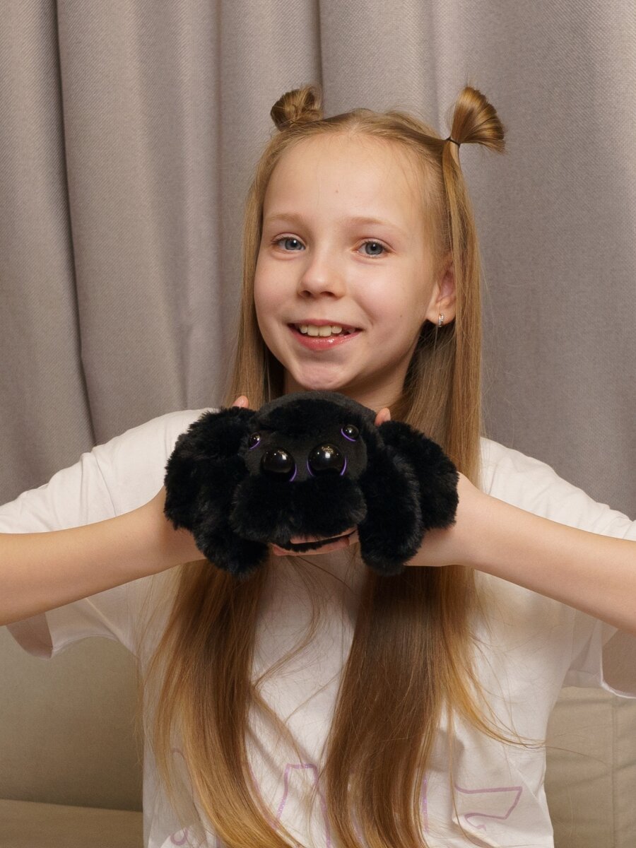 Мягкая игрушка паук BOOMTS, Павучок черный с фиолетовыми глазами интересное: