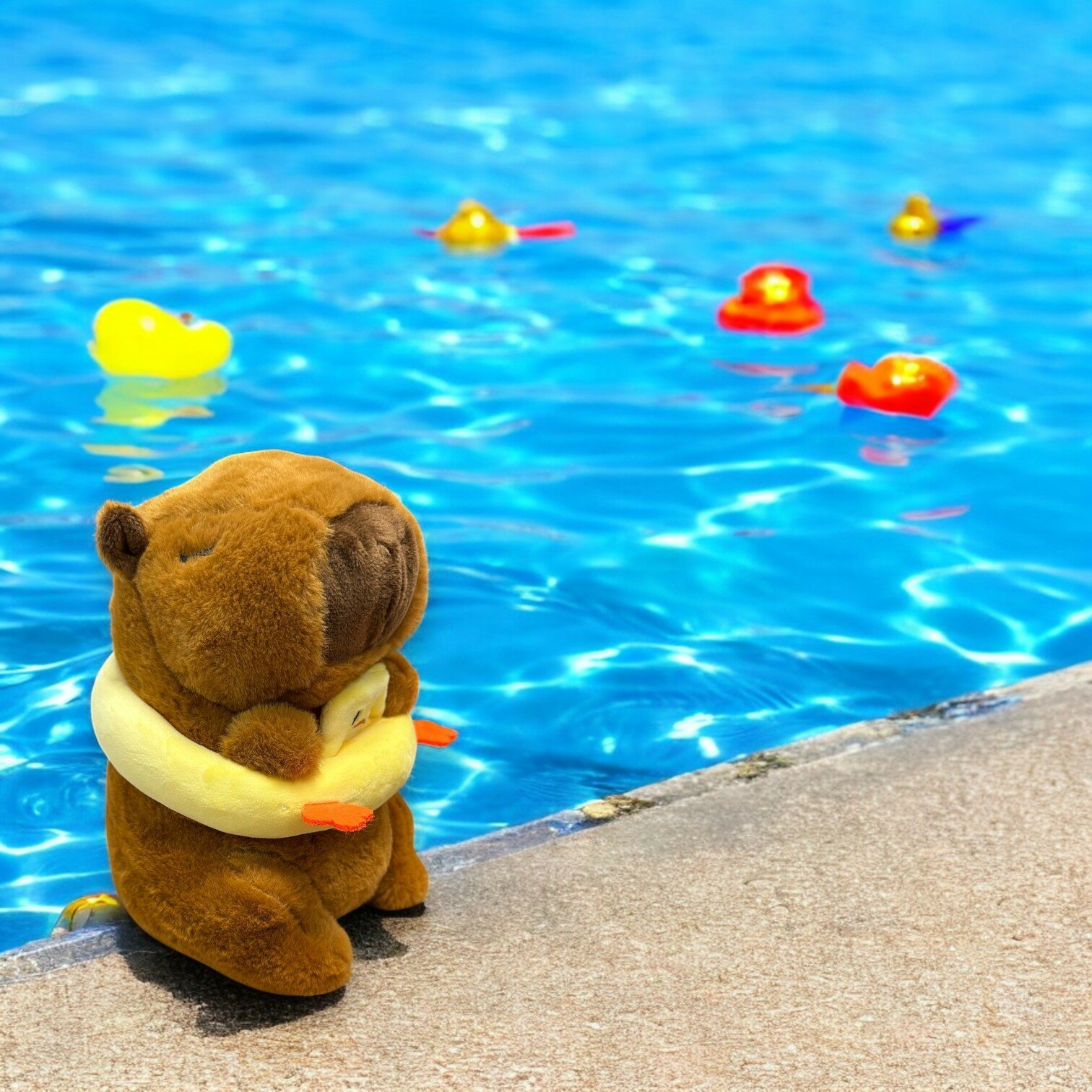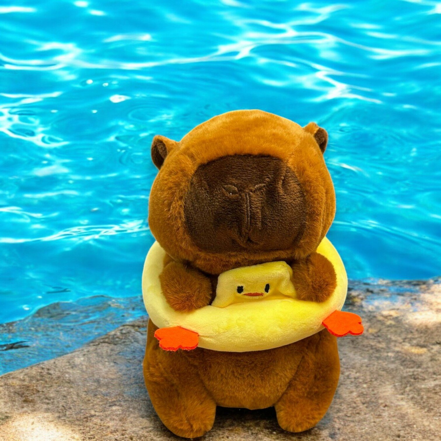 Купить Мягкая игрушка "Капибара с кругом утенок" 20 см