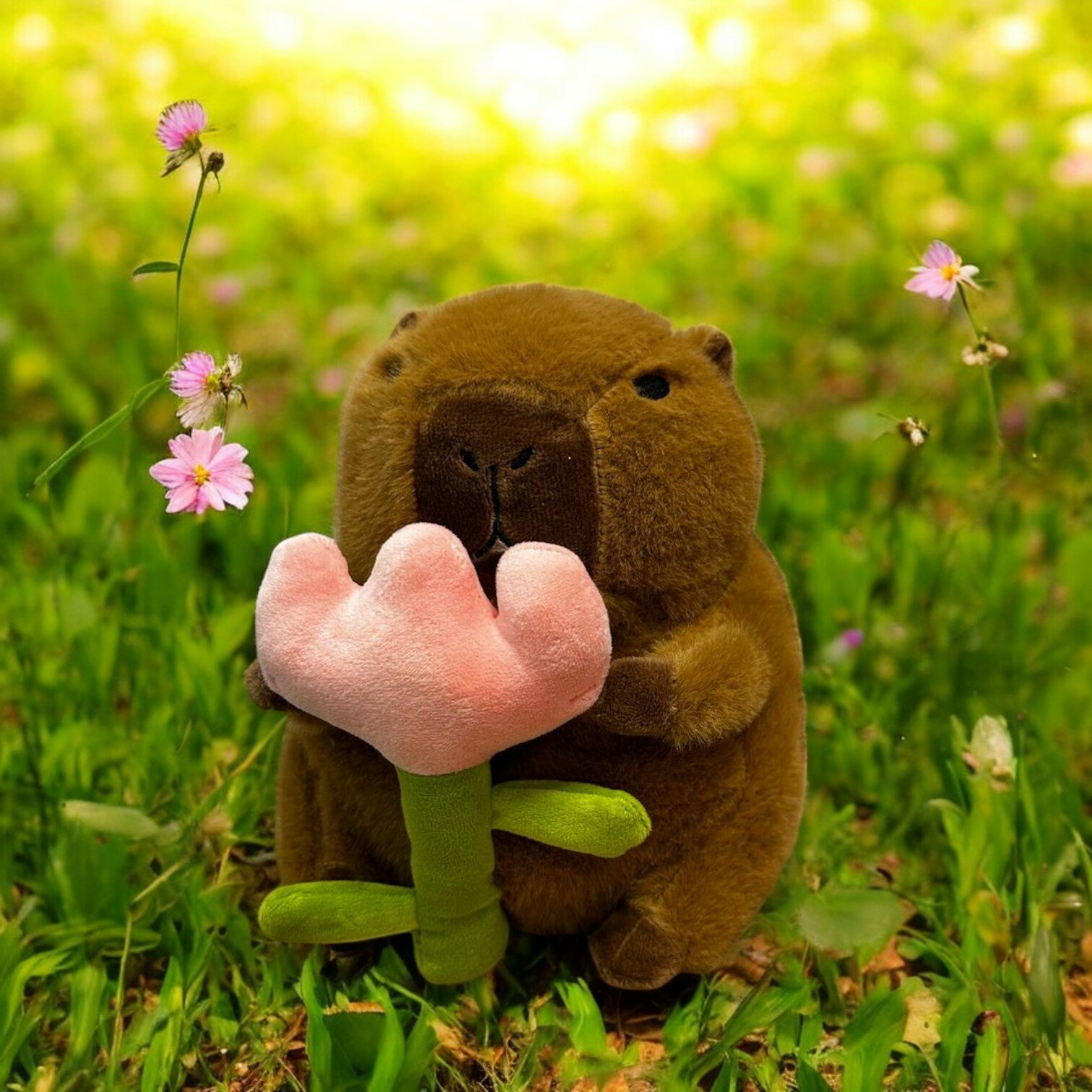Купить Мягкая игрушка "Капибара с цветком" 20 см