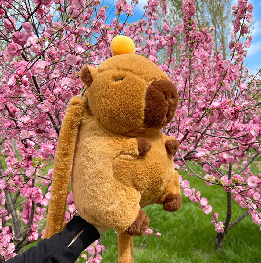 Мягкая игрушка-Рюкзак "Капибара с цветком" 35см