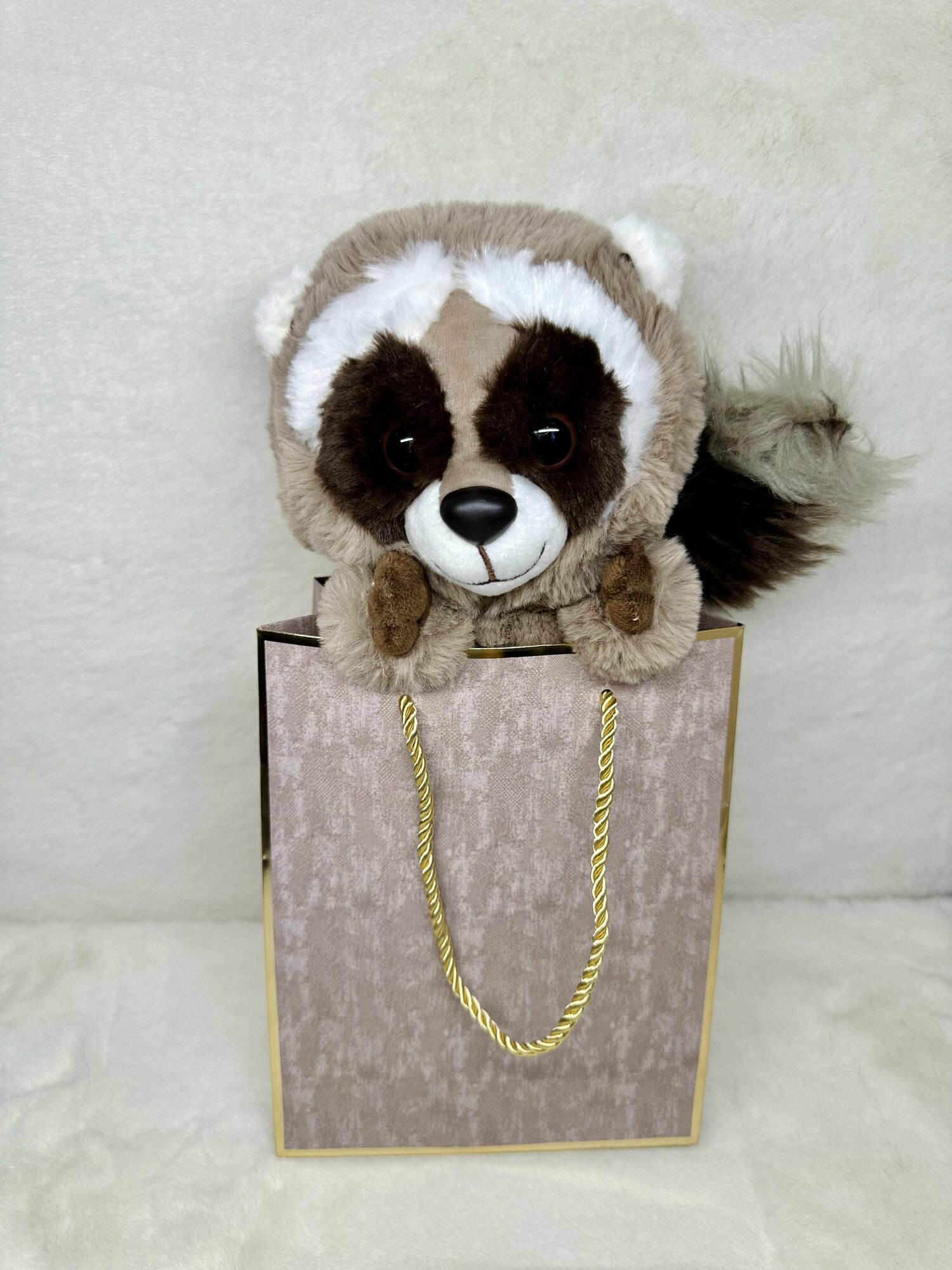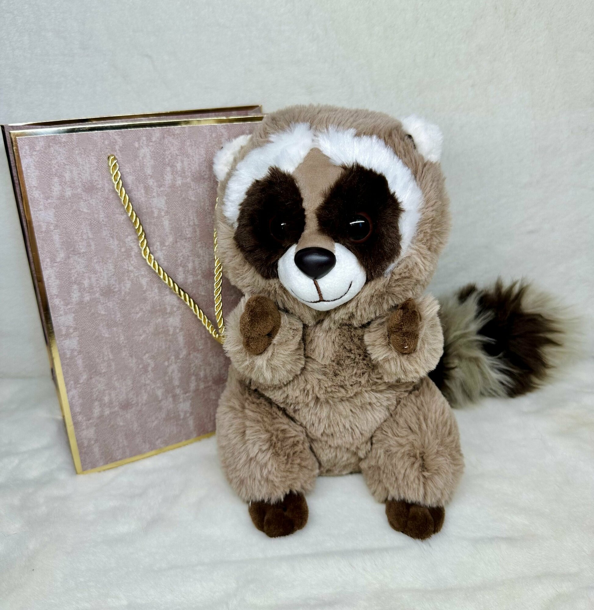 Купить Мягкая игрушка для девочек и мальчиков Енот Обнимашка в подарочном пакете 30 см