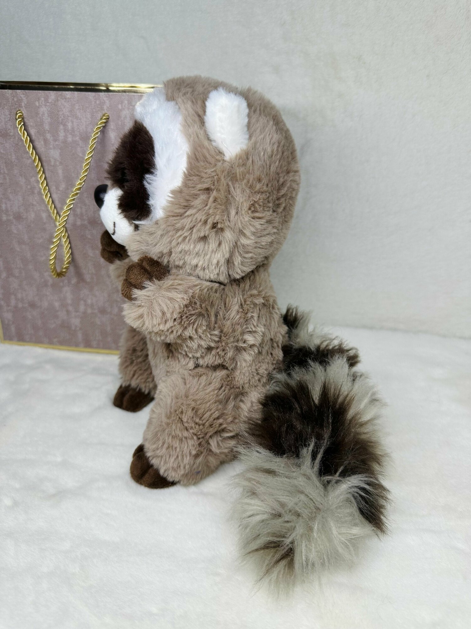 Мягкая игрушка для девочек и мальчиков Енот Обнимашка в подарочном пакете 30 см интересное: