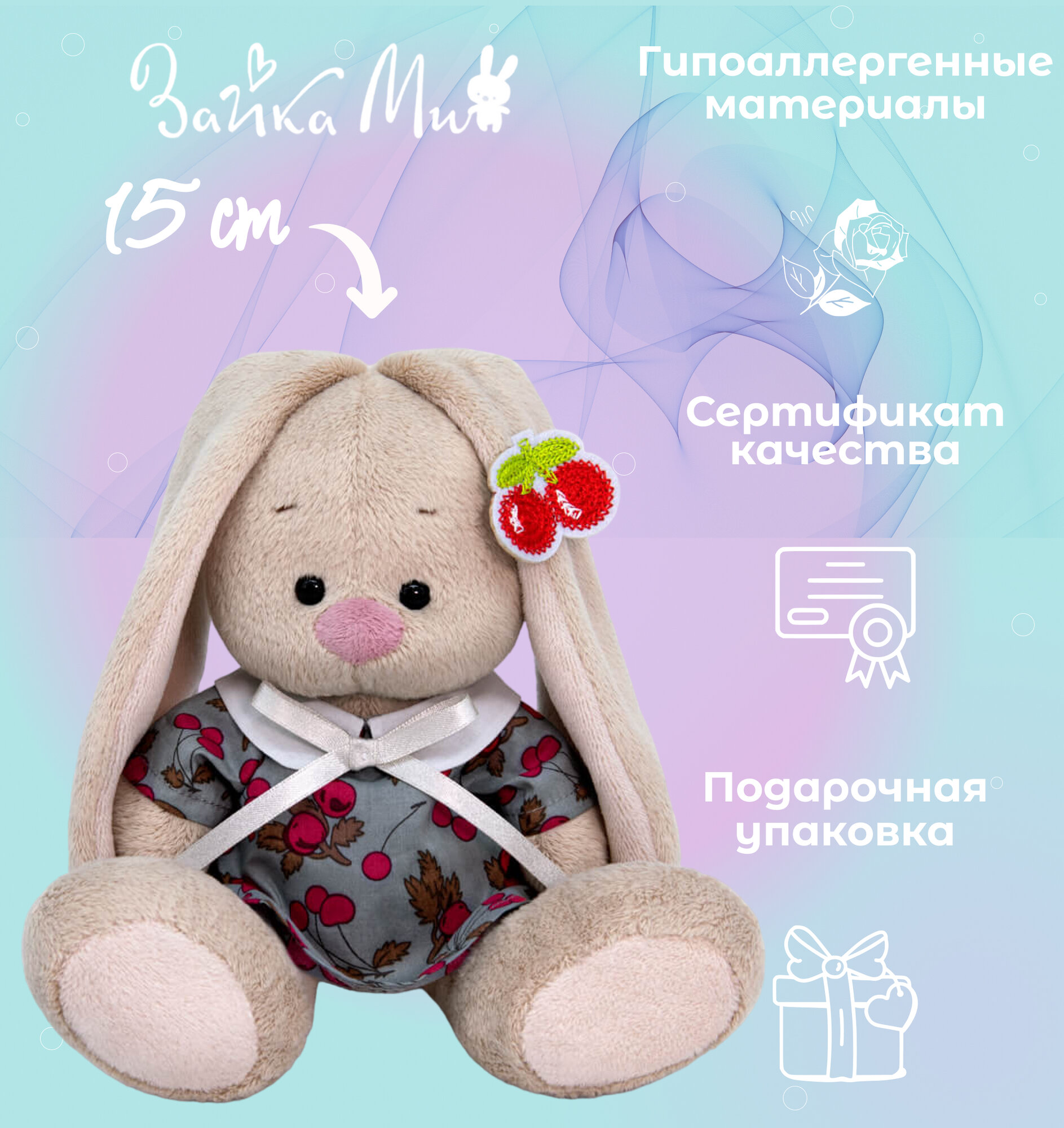 Игрушка мягкая Зайка Ми в платье с вишней /малыш 15см интересное: