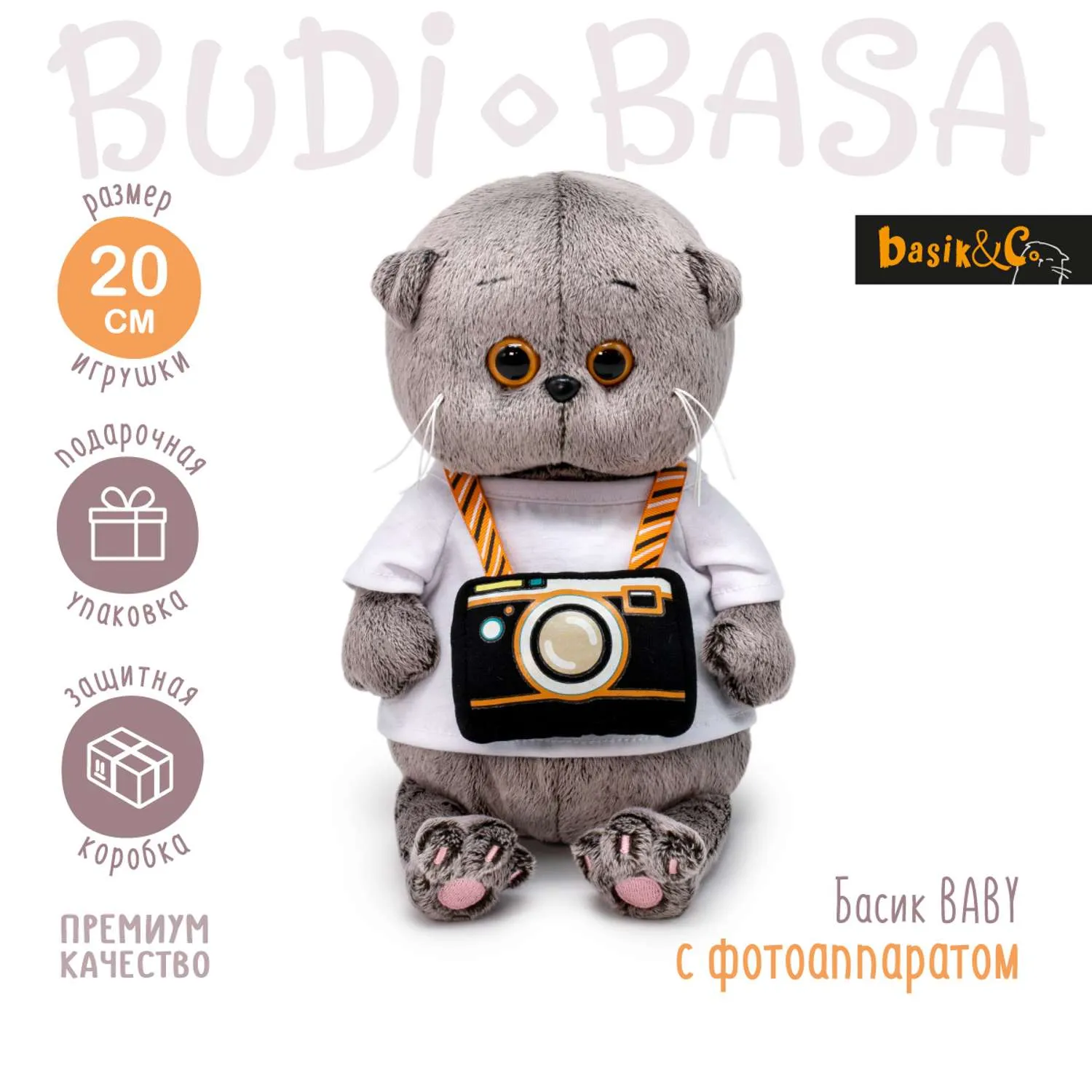 СохранитьBudi Basa Мягкая Игрушка Кот Басик BABY с фотоаппаратом (20см, в подарочной коробке) BB-126, (ООО " интересное: