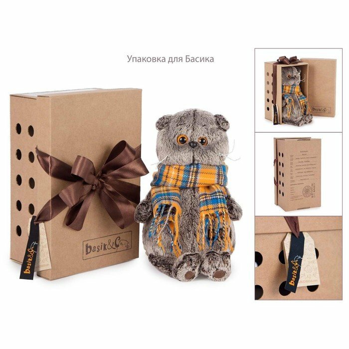Budi Basa Мягкая Игрушка Кот Басик в клетчатом плаще (19см, в подарочной коробке) Ks19-261