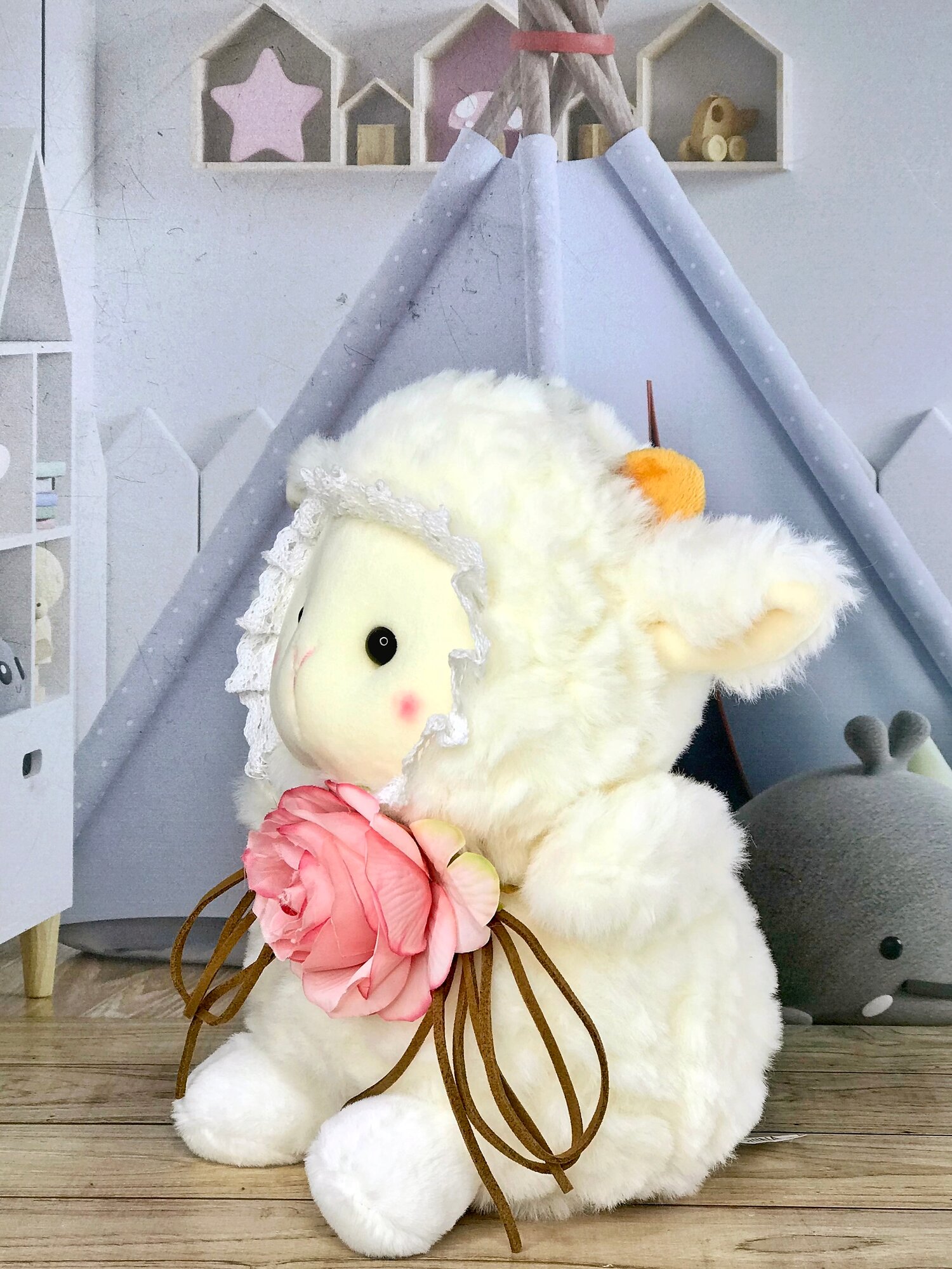 Мягкая игрушка антистресс Овечка с розой 20 см молочная/персиковая