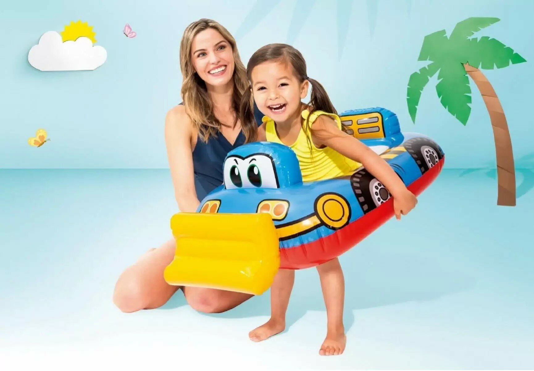 Купить Надувной круг для плавания детский с ножками Бульдозер 84х58 см от 1 до 2 лет Intex 59586NP