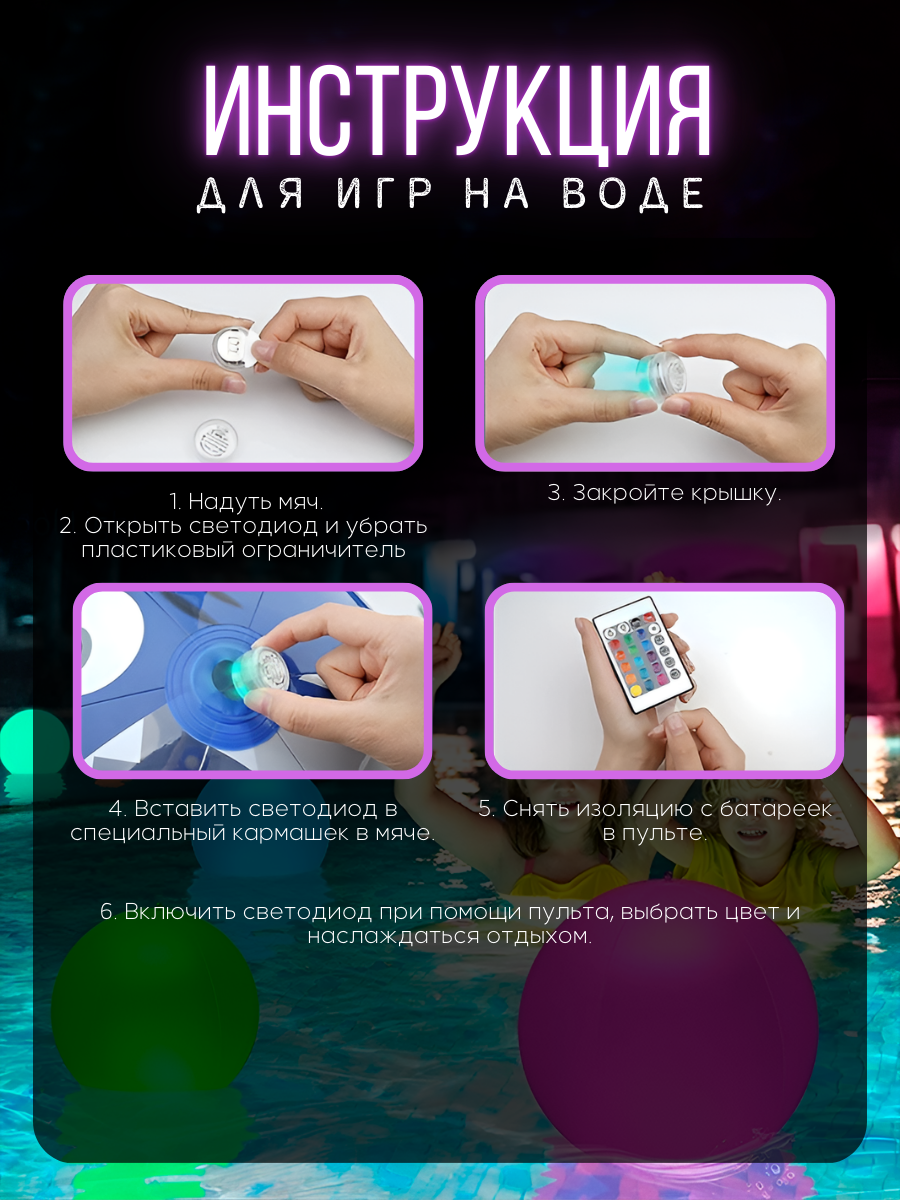 Надувной светящийся мяч для игр на воде, 40см, rgb подсветка интересное: