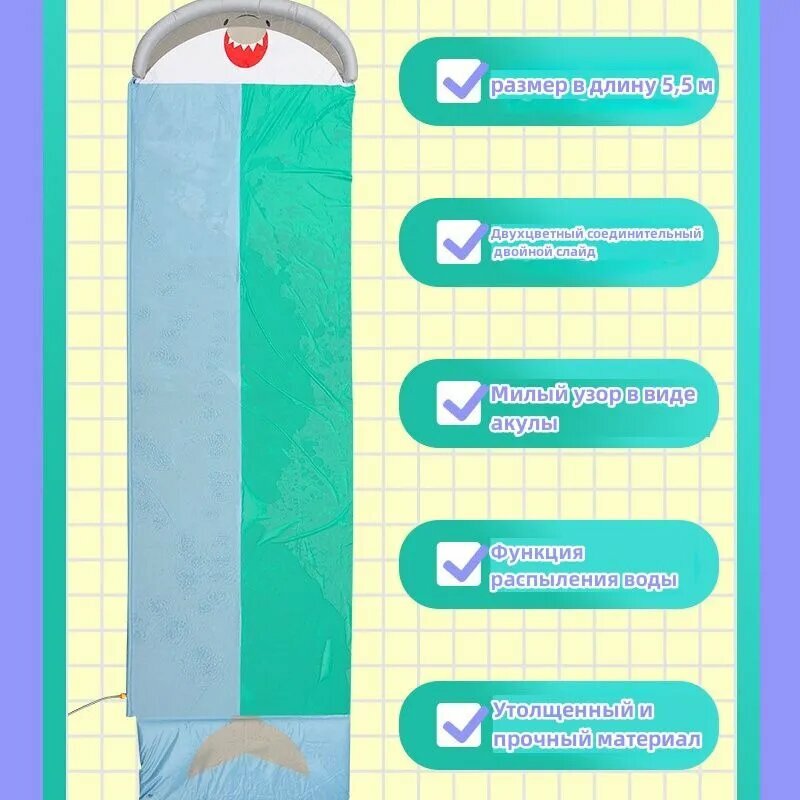 Горка водная дорожка детская Cute Shark надувная подушка для распыления воды 550*145cm интересное: