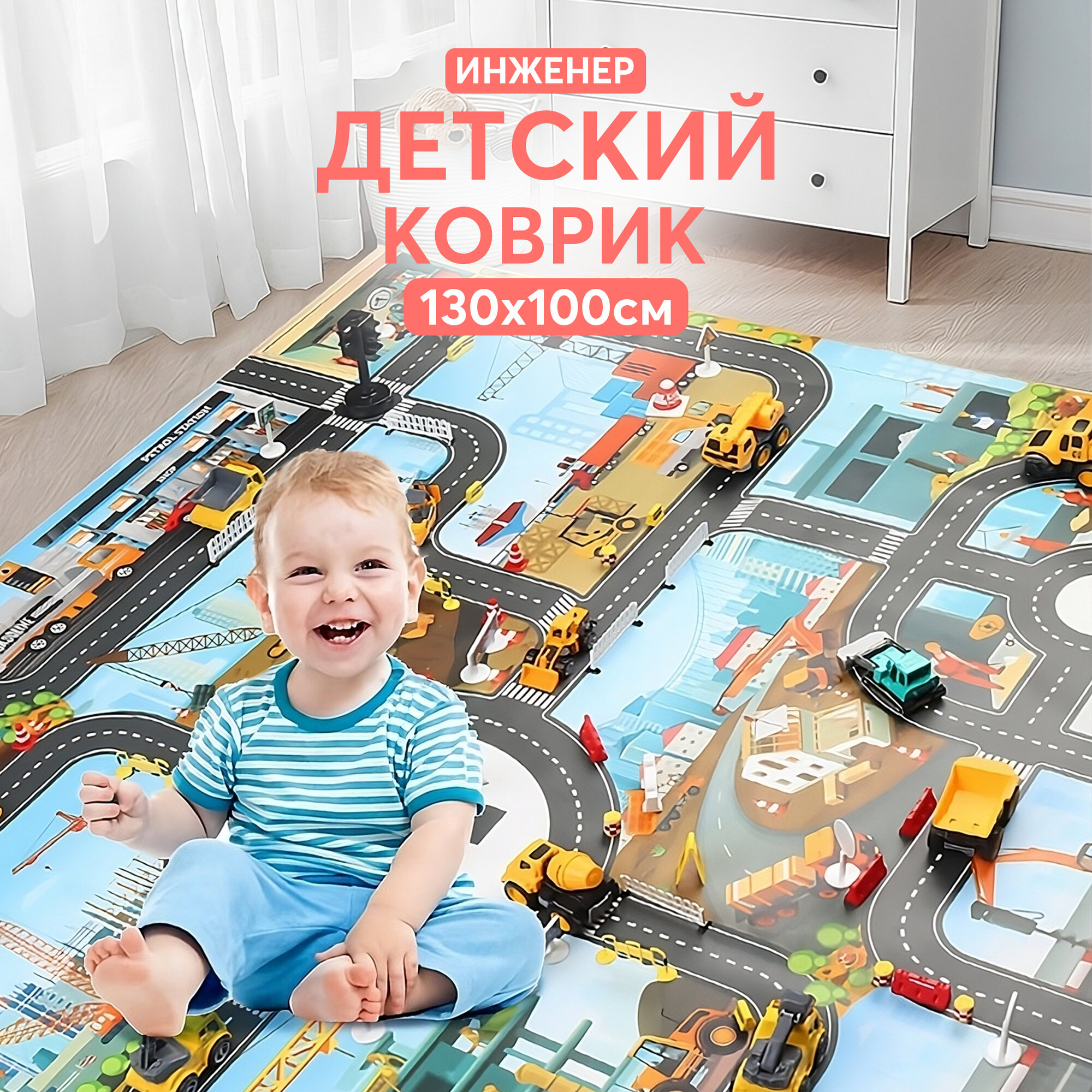СохранитьДетский коврик развивающий игровой для детей Инженер 130х100 см интересное: