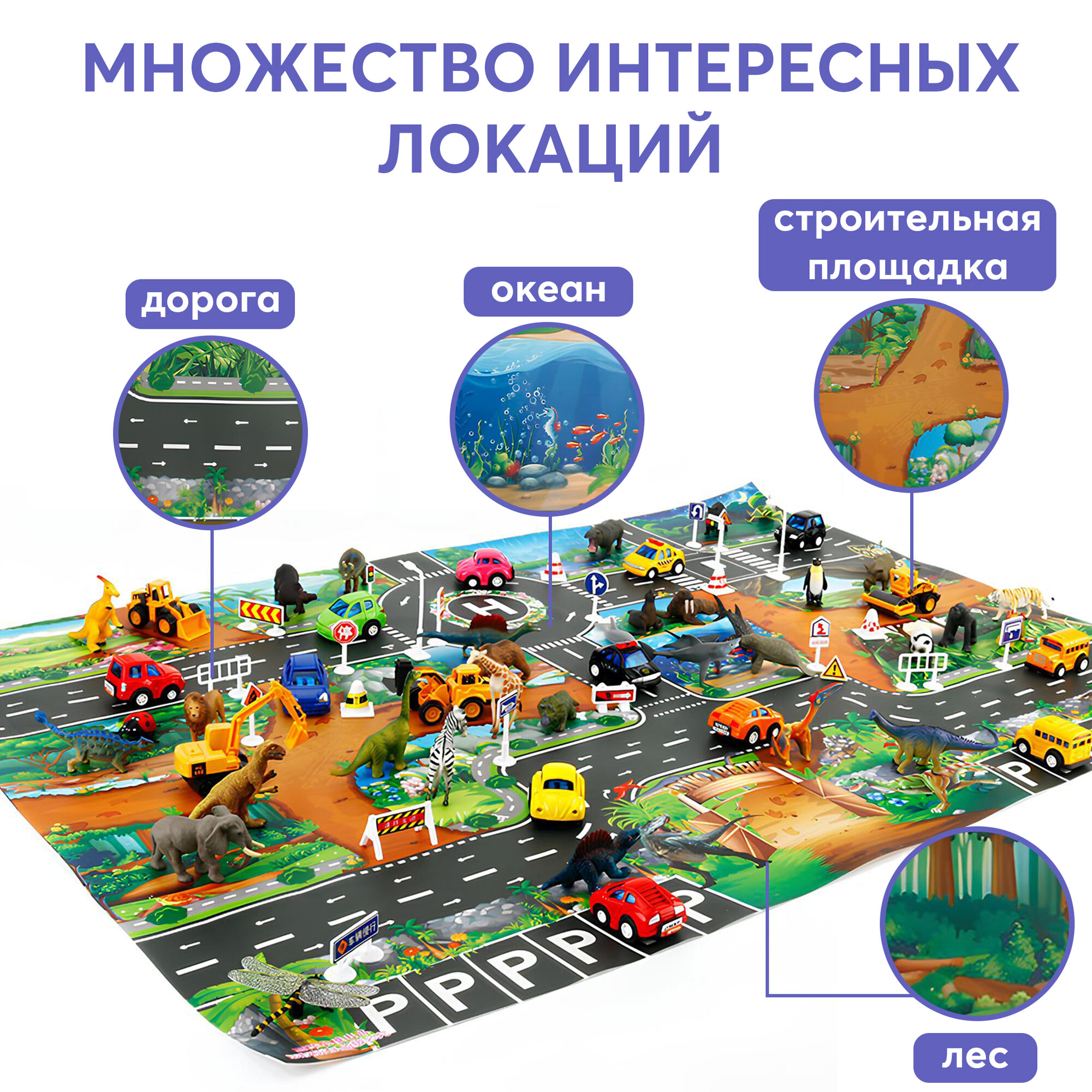 Купить Детский коврик развивающий игровой для детей Дино 83х57 см с дорогами и парковкой