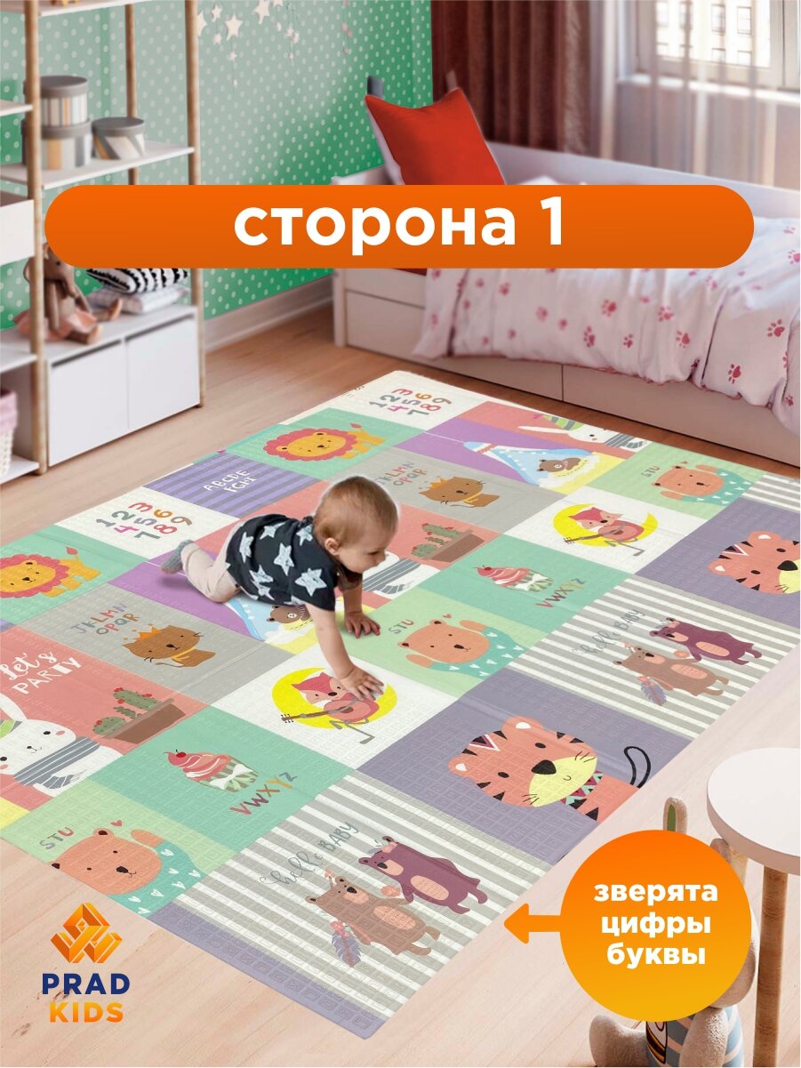 Купить Коврик детский для ползания 150x200 Зверята/Лес, складной развивающий игровой двусторонний для новорожденных малышей