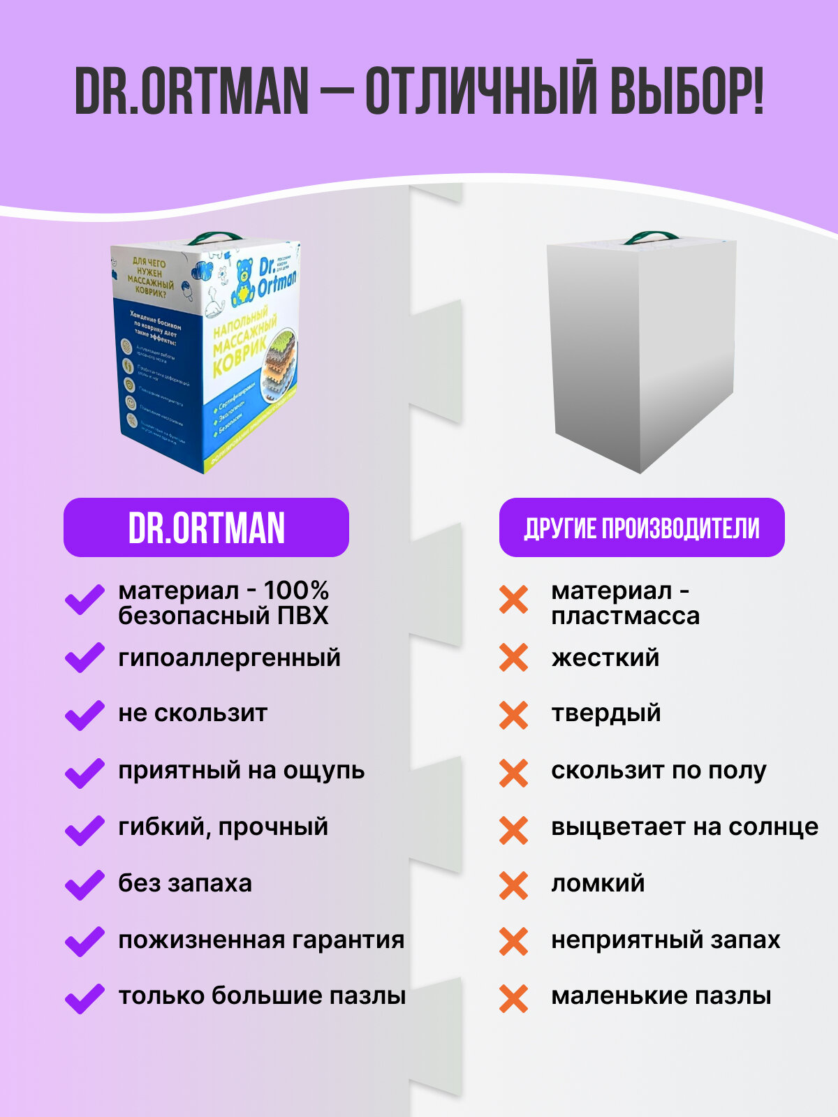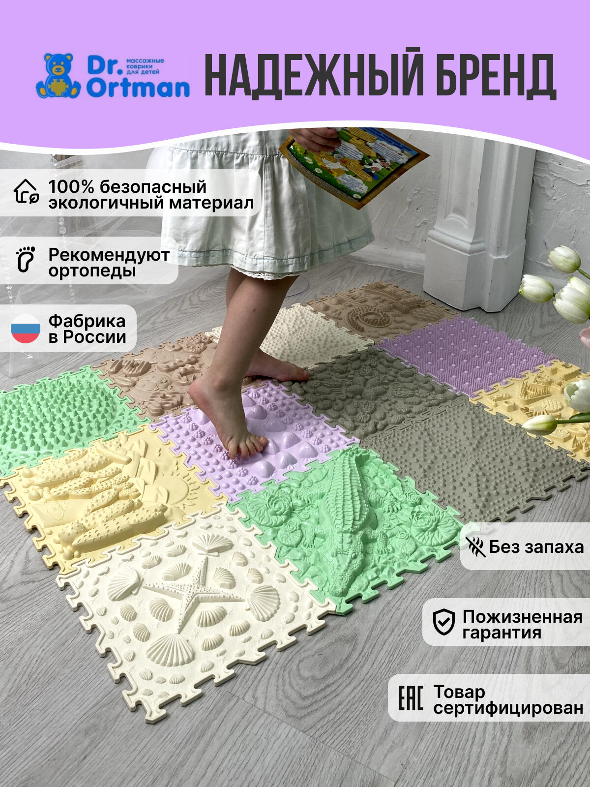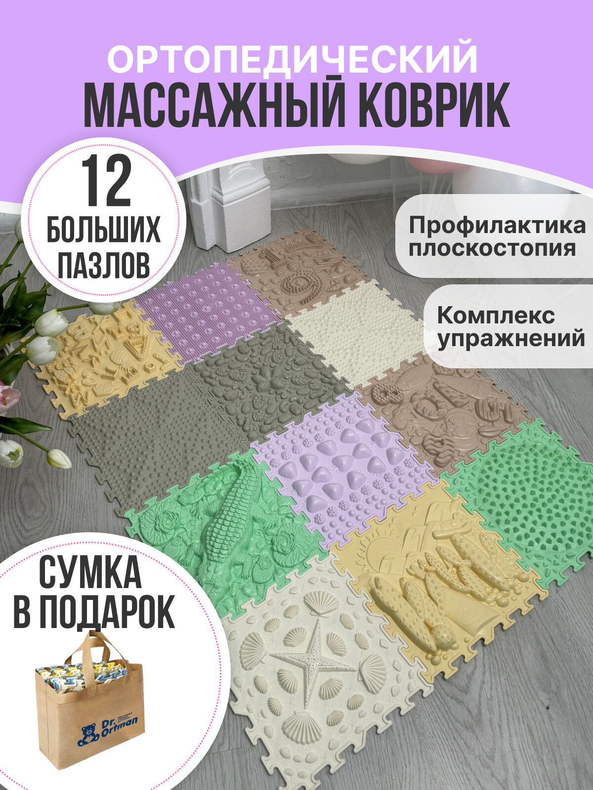 Коврик массажный игровой модульный напольный "Dr.Ortman", фактурный коврик-пазл, спортивный, 12 штук интересное: