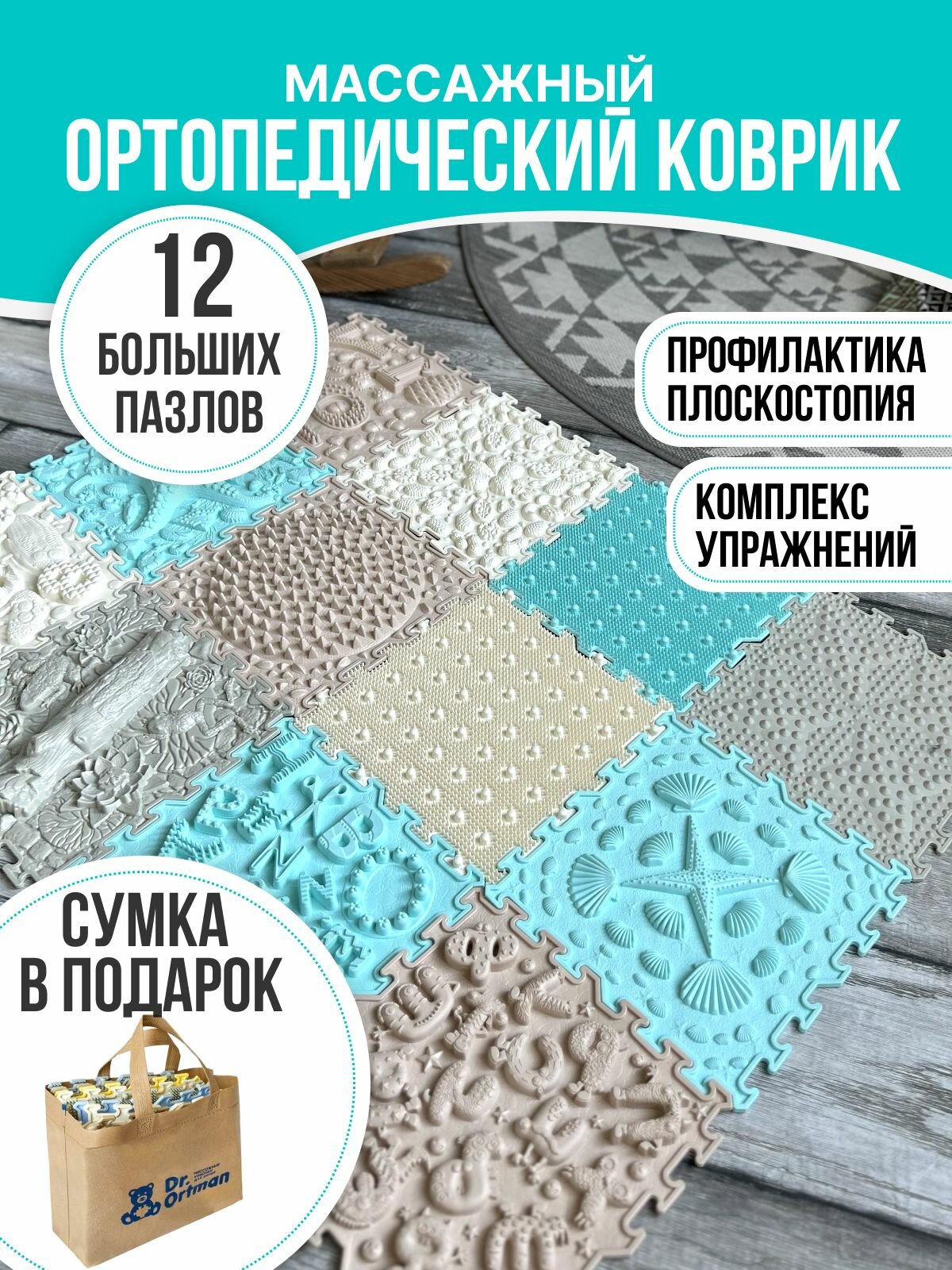 Коврик массажный игровой модульный напольный "Dr.Ortman", фактурный коврик-пазл, спортивный, 10 штук