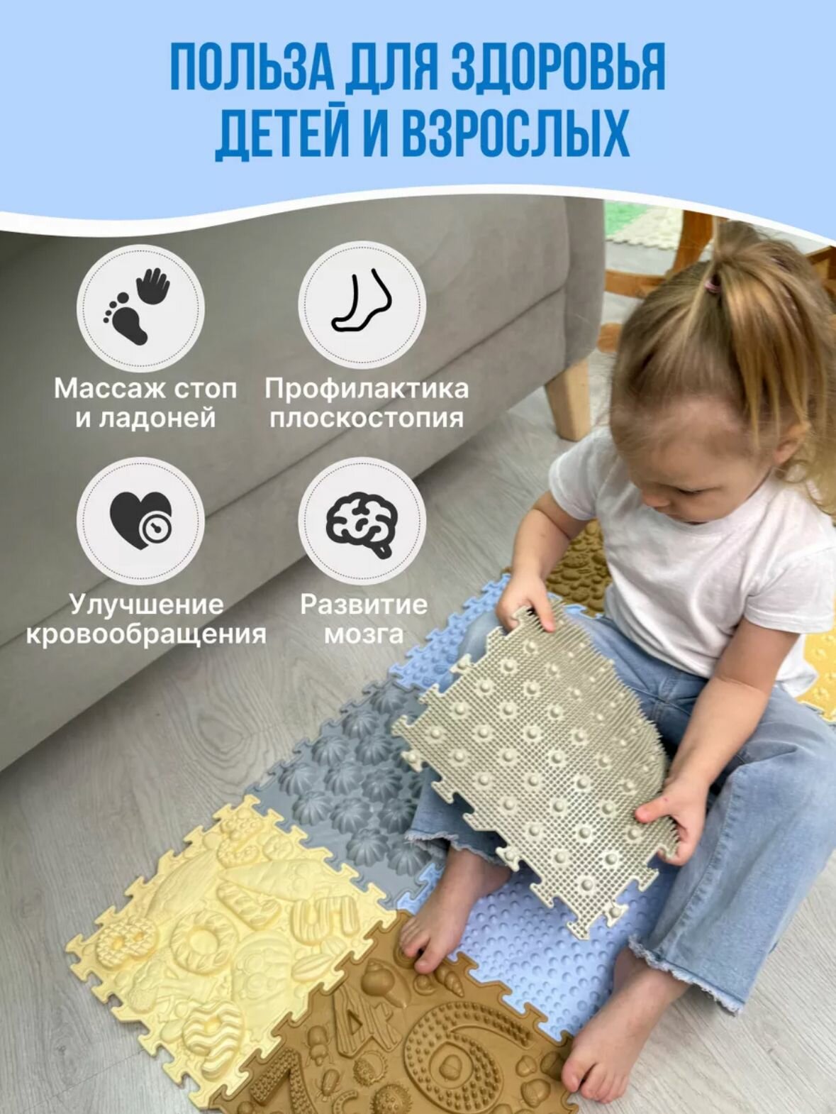 СохранитьКоврик массажный игровой модульный напольный "Dr.Ortman", фактурный коврик-пазл, спортивный, 8 штук интересное: