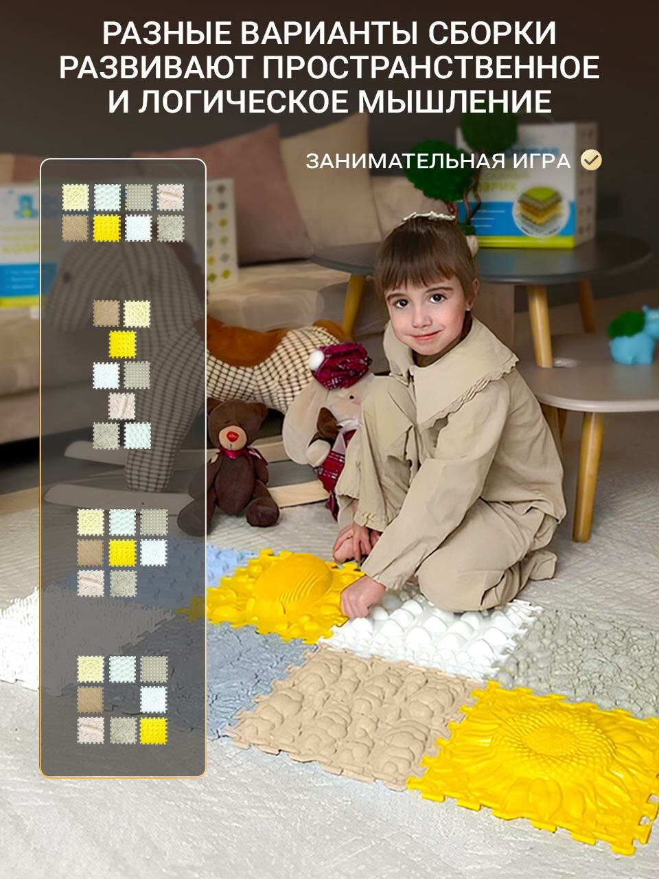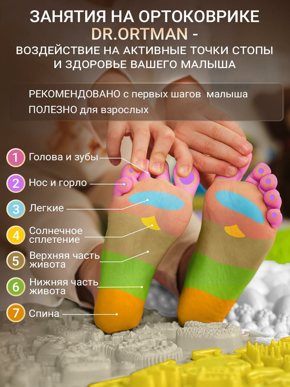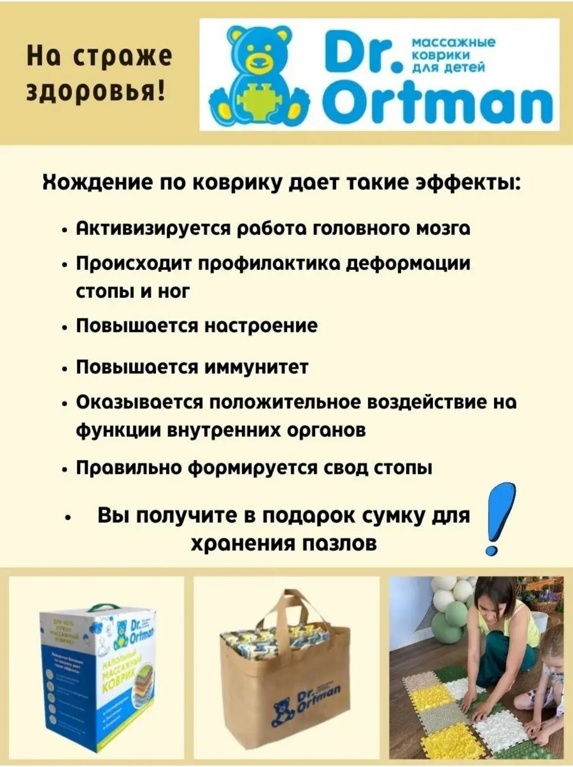 Коврик массажный игровой модульный напольный "Dr.Ortman", фактурный коврик-пазл, спортивный, 8 штук