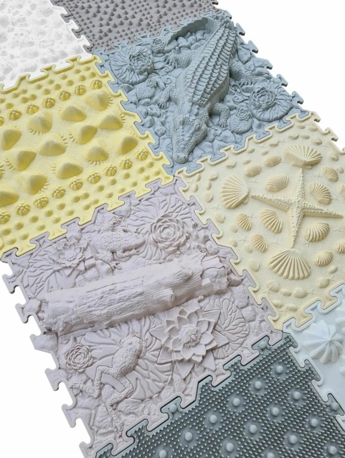 Коврик массажный игровой модульный напольный "Dr.Ortman", фактурный коврик-пазл, спортивный, 6 шт.