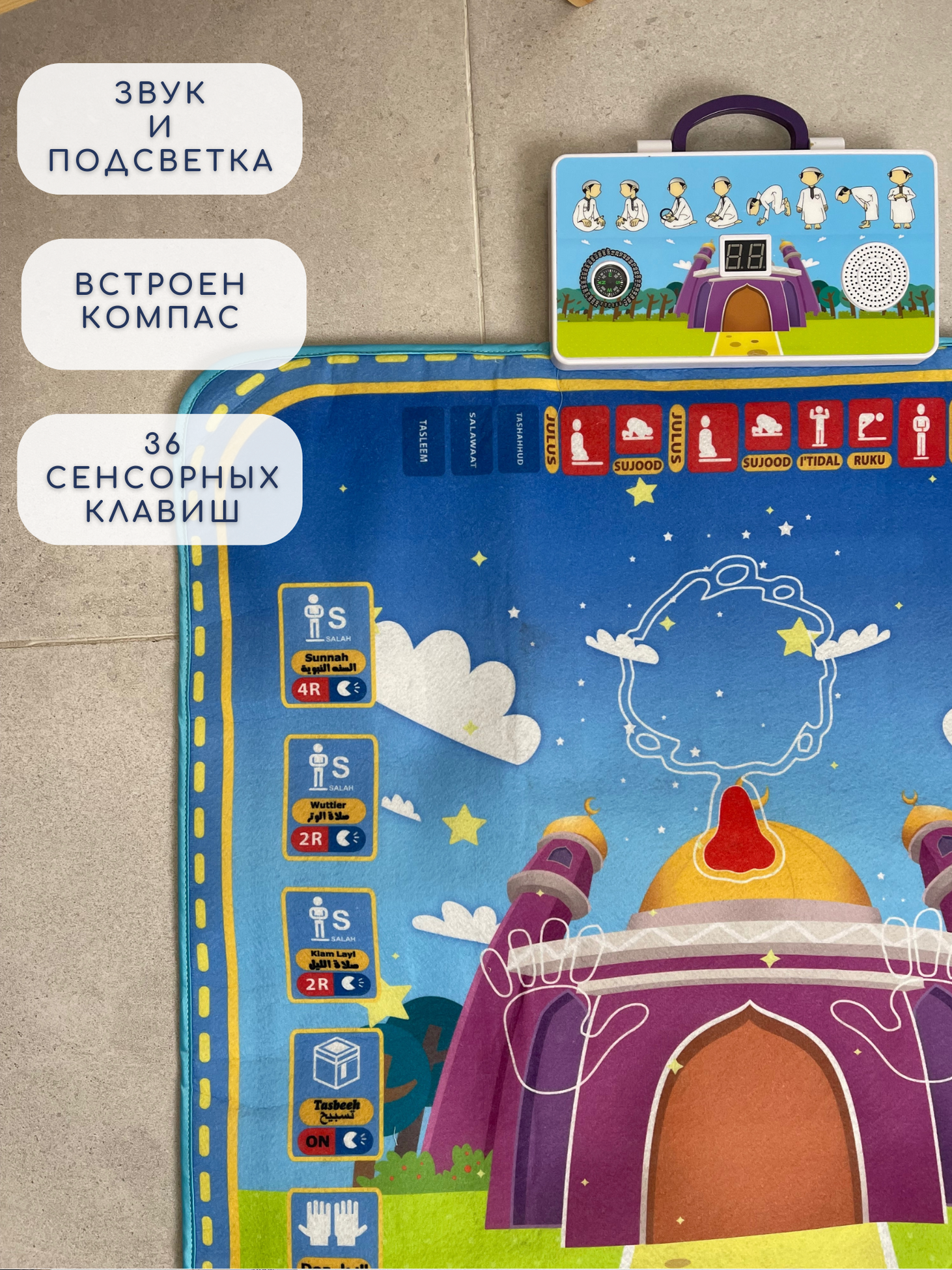 Электронный обучающий коврик для намаза детский 110*70 интересное: