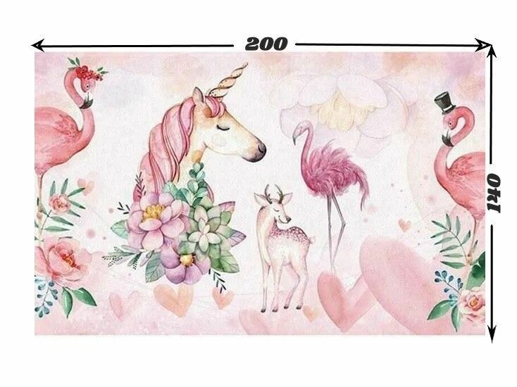Купить Коврик для детской 140х200см, детский коврик безворсовый для девочки "Единорог розовый"
