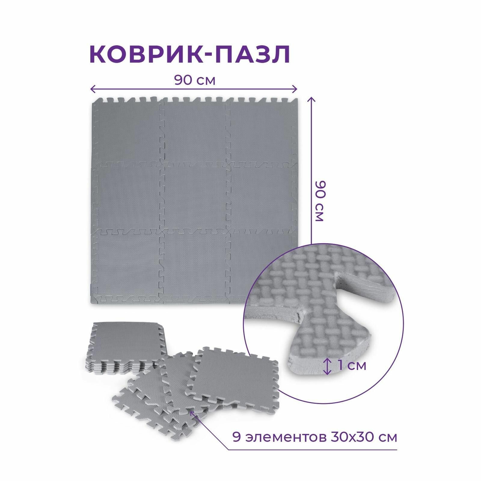 Спортивный коврик пазл мягкий складной INDIGO, EVA, 9 сегментов размером 30х3см, Серый интересное: