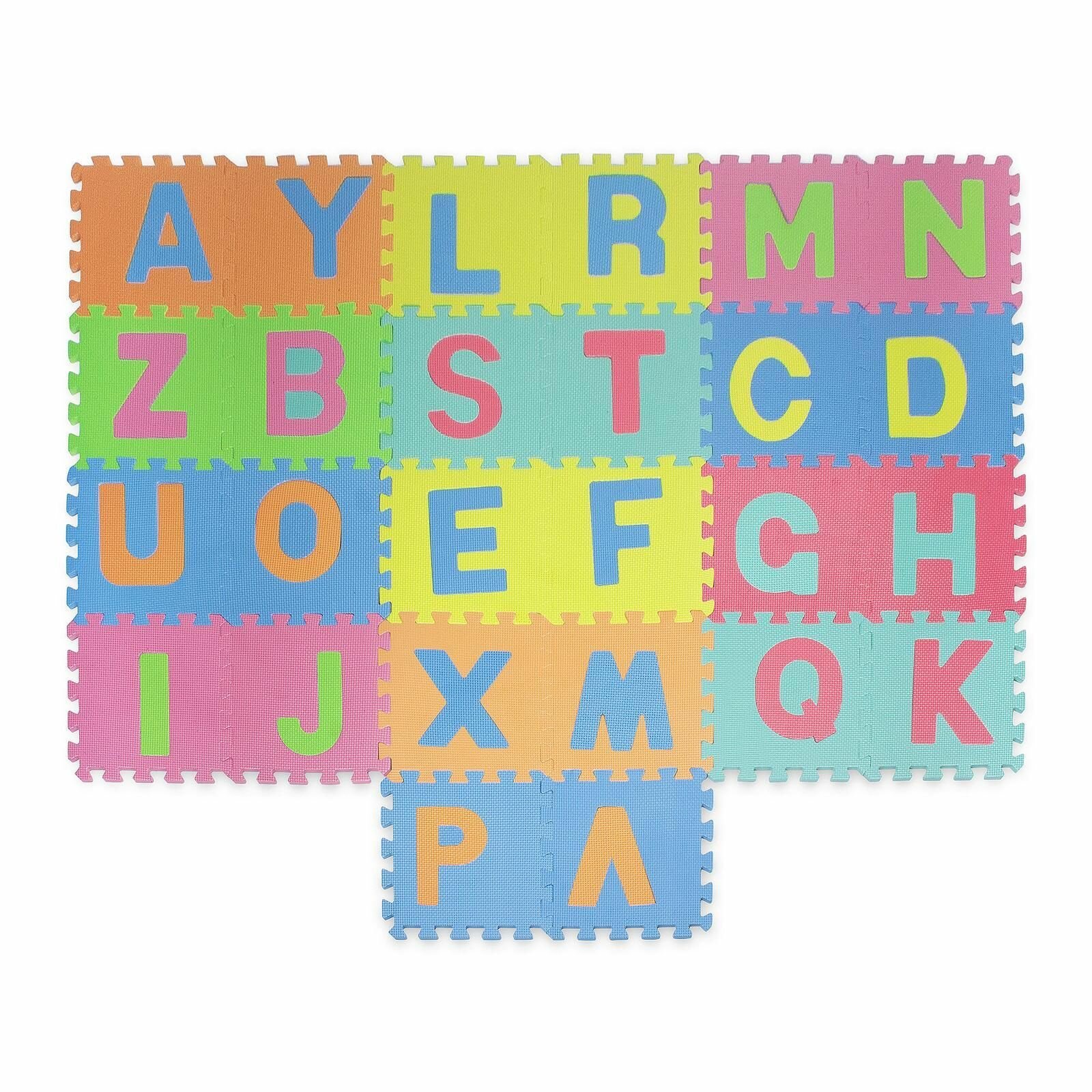 Купить Коврик-пазл детский развивающий мягкий складной INDIGO Буквы Желто-розово-фиолетовый