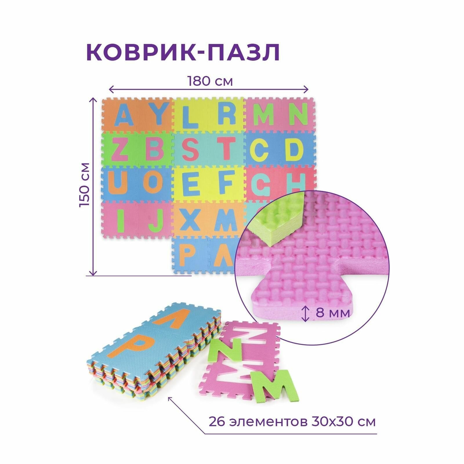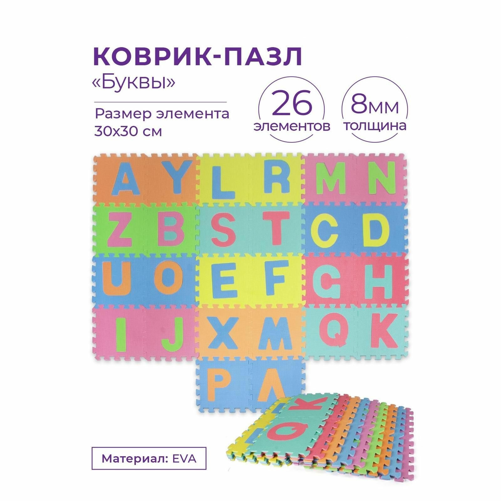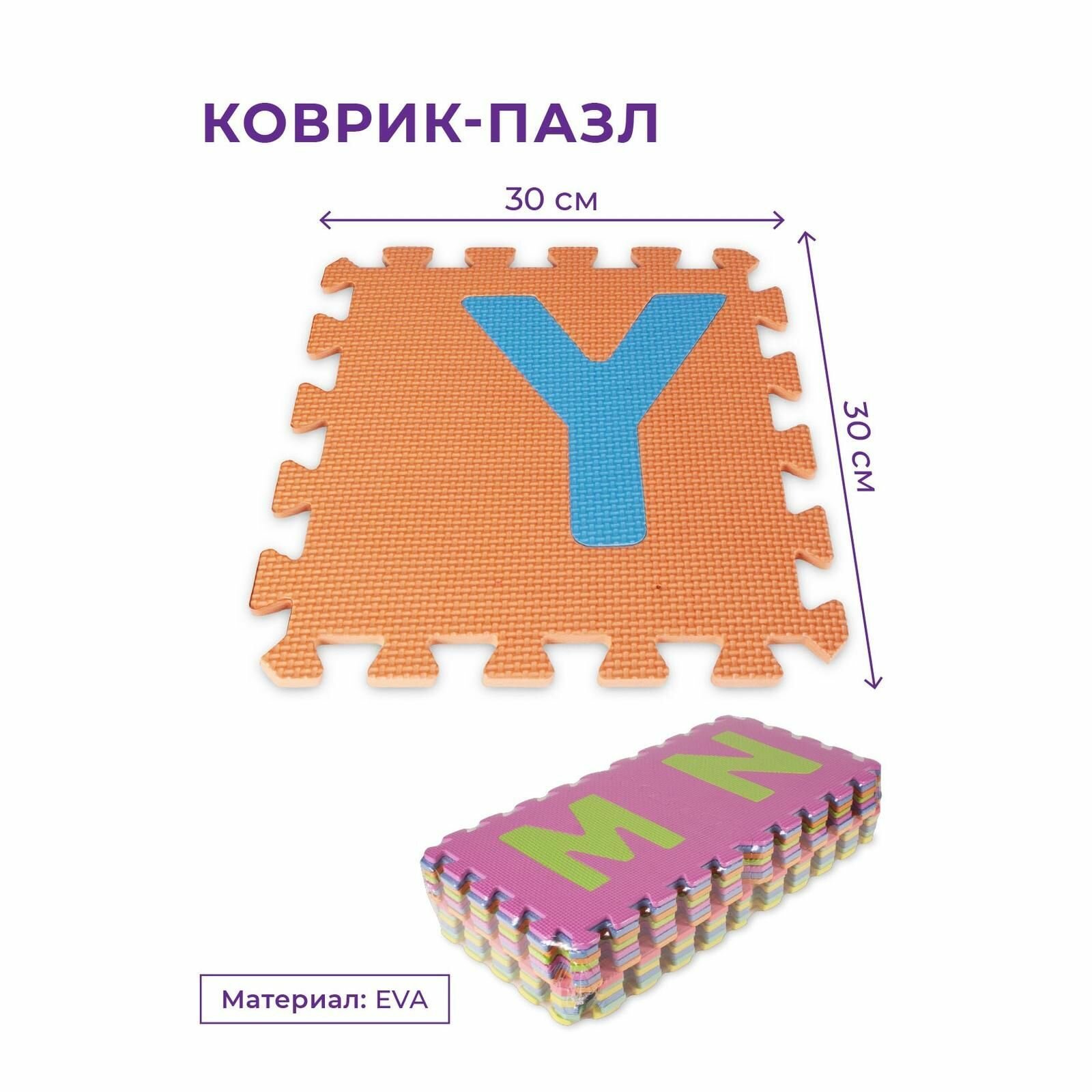 Коврик-пазл детский развивающий мягкий складной INDIGO Буквы Желто-розово-фиолетовый интересное: