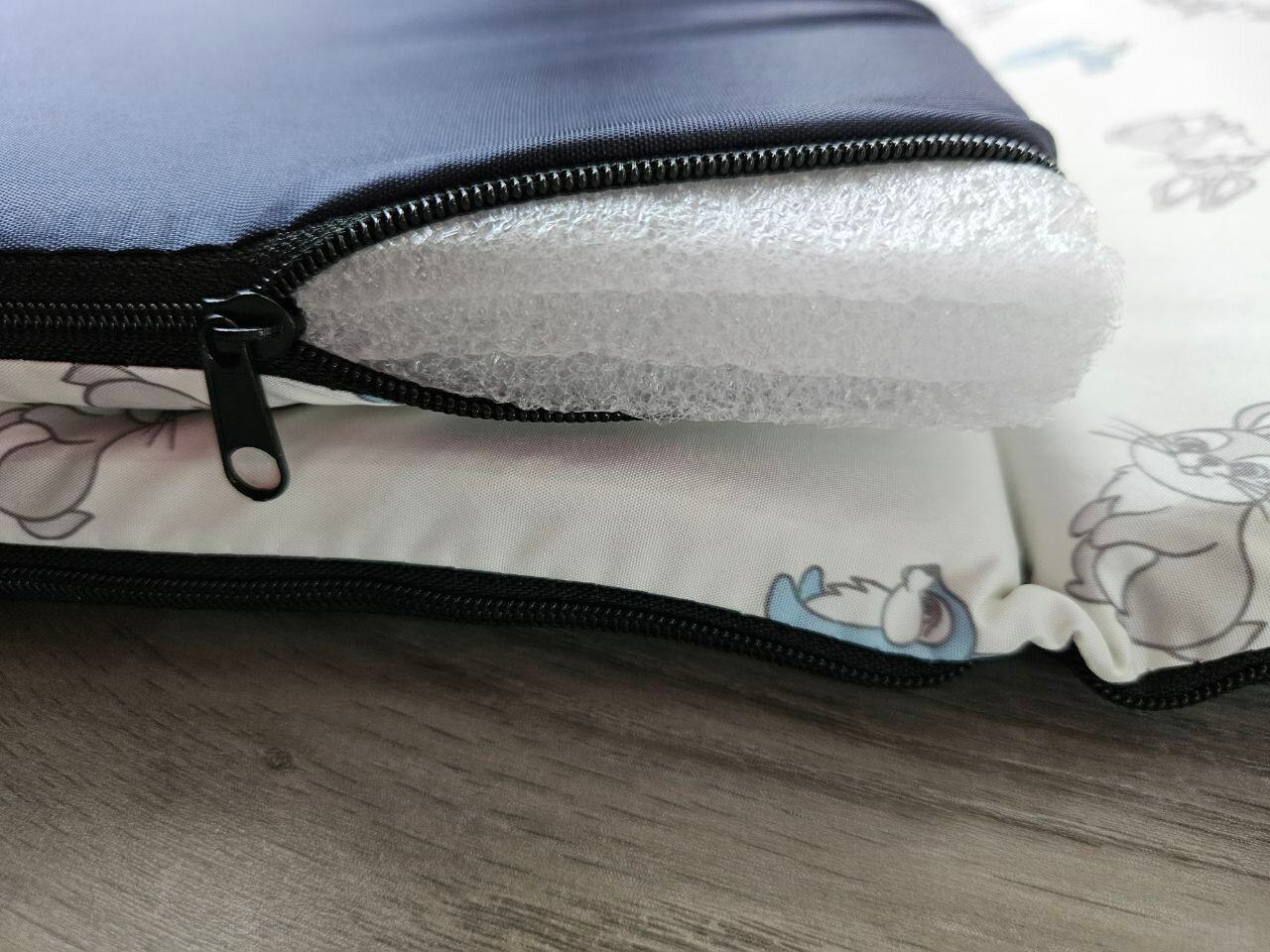 | Дополнительная информация | замки-"молнии" по бокам коврика для возможности вытащить наполнитель и постирать коврик, вшиты 2 вида ручек: в ладонь и через плечо |