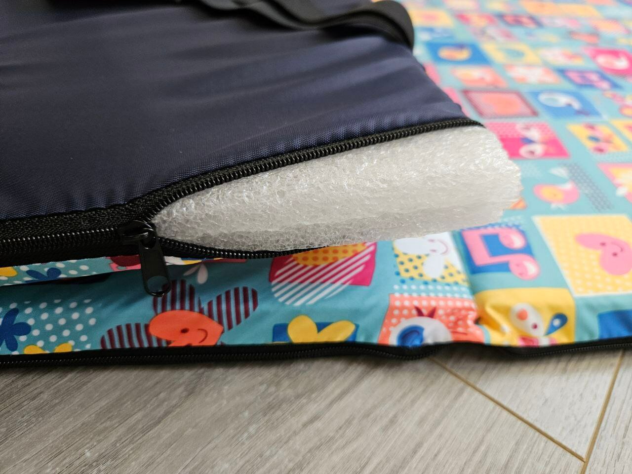 | Дополнительная информация | замки-"молнии" по бокам коврика для возможности вытащить наполнитель и постирать коврик, вшиты 2 вида ручек: в ладонь и через плечо |