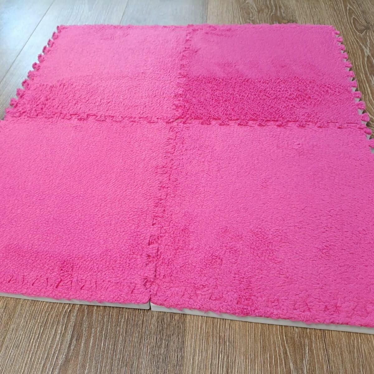 Купить МегаТолстый, пушистый, тёплый коврик-пазл из ЭВА, 10 шт, 30х30х1,5 см, ярко-розовый