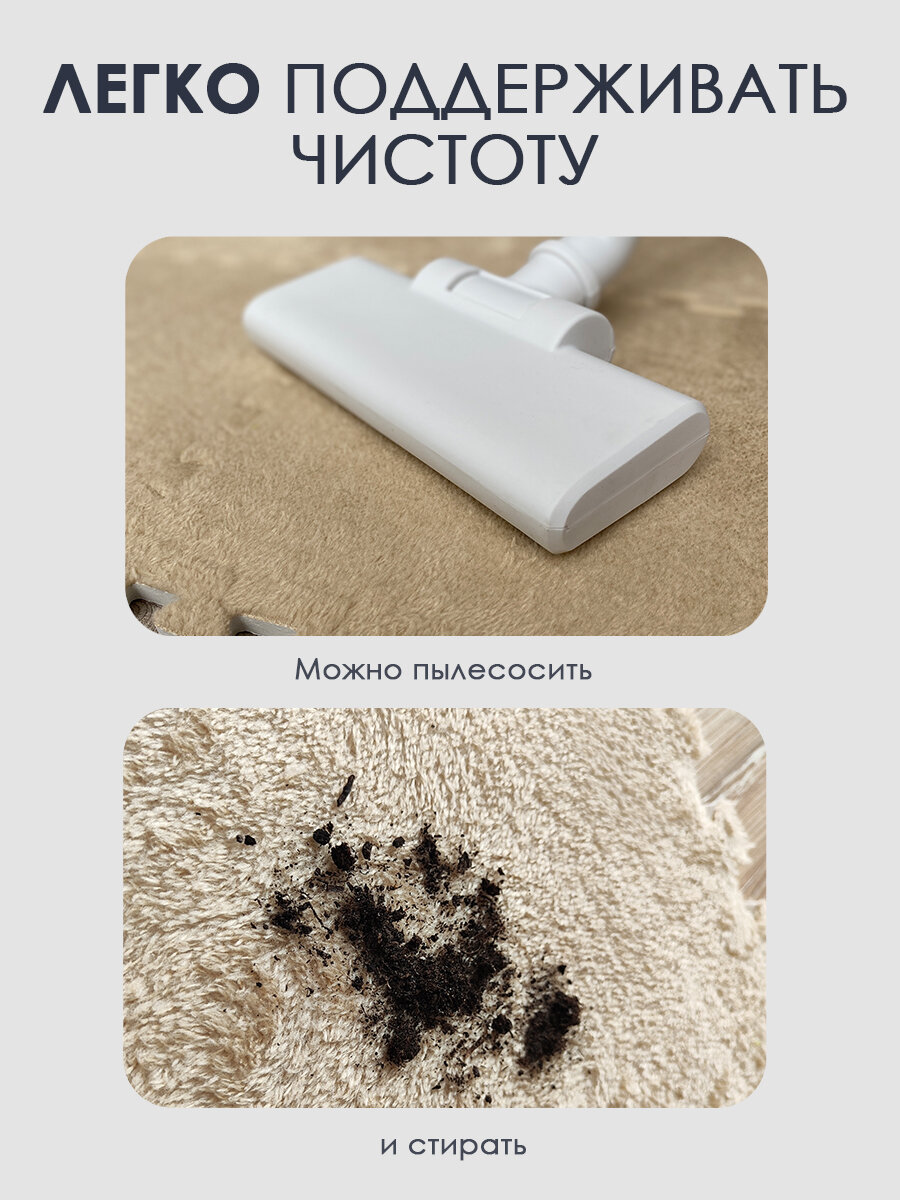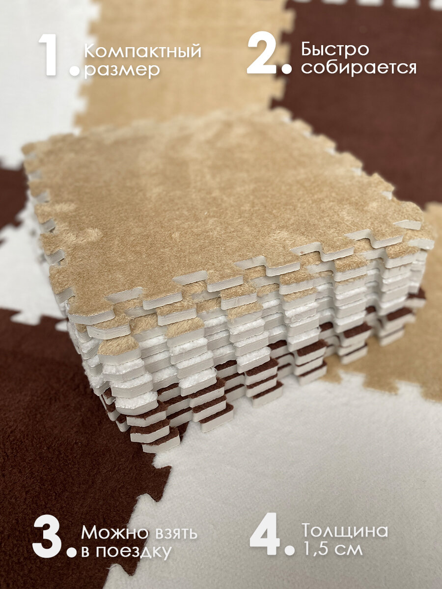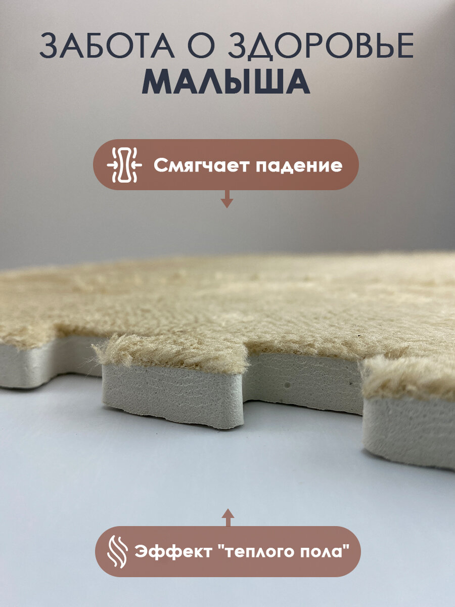 Коврик пазл детский мягкий с ворсом плюшевый, 10 деталей, толщина 1,5 см, бежевый