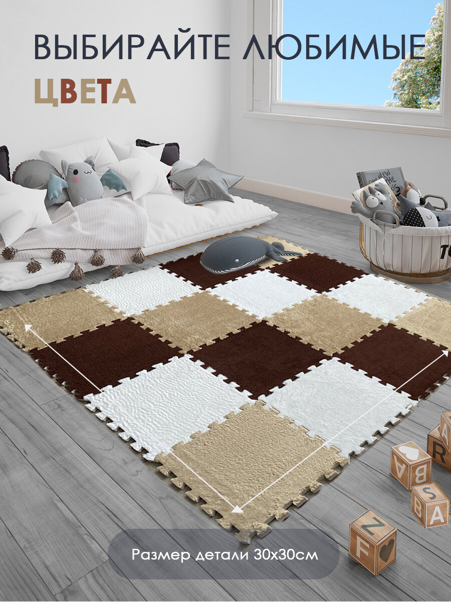 Купить Коврик пазл детский мягкий с ворсом плюшевый, 10 деталей, толщина 1,5 см, коричневый