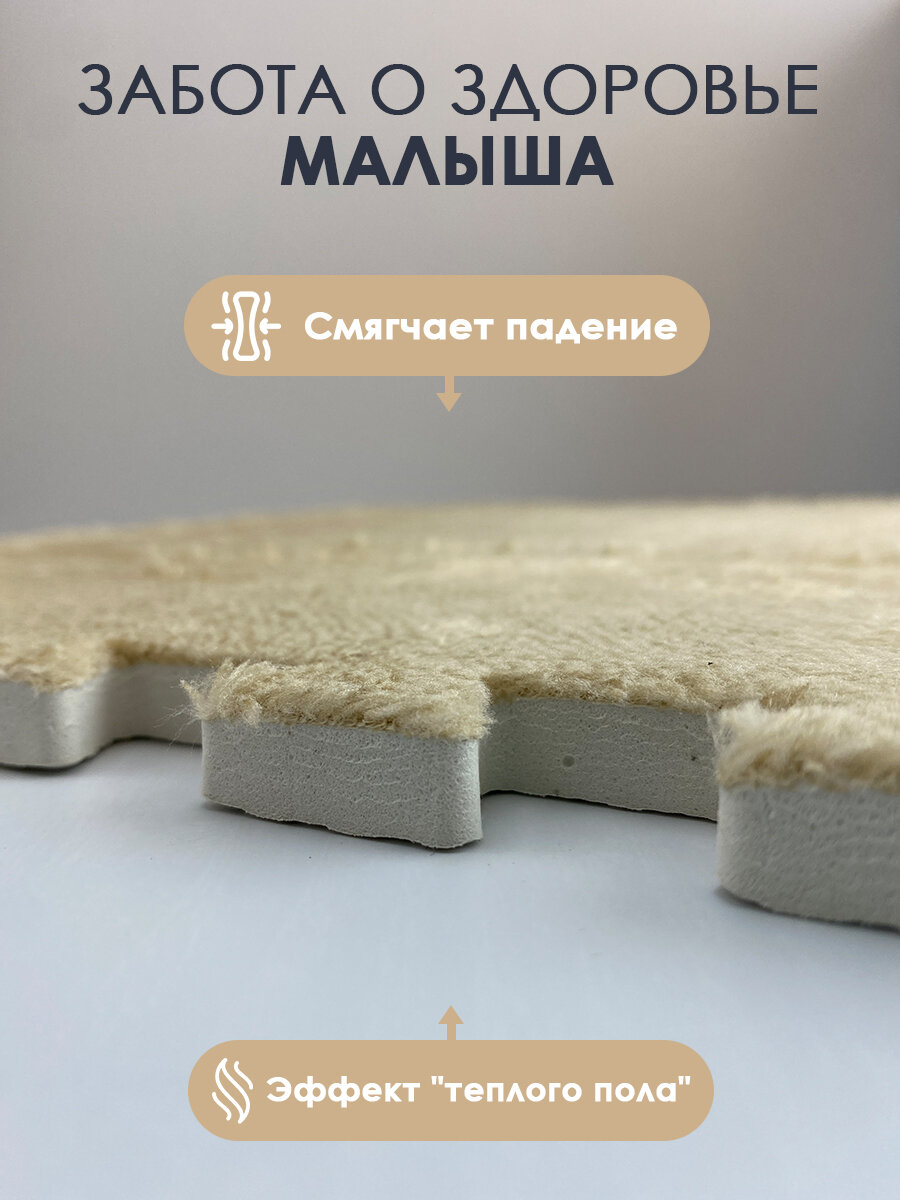 Коврик пазл детский мягкий с ворсом плюшевый, 10 деталей, толщина 1,5 см, бежевый интересное: