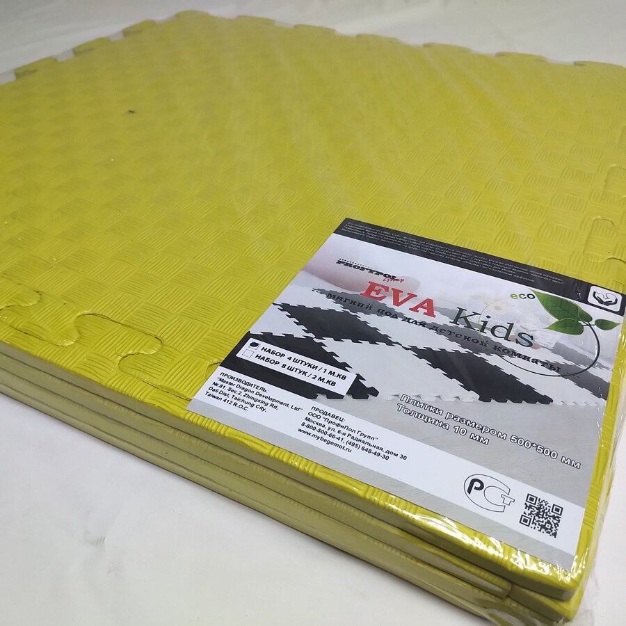 Мягкий пол, коврики-пазлы 50х50x1 см, желтый, набор из 4-х плиток. интересное: