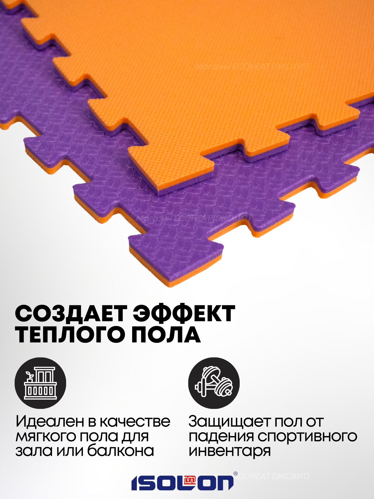 Купить Мат коврик-пазл мягкий пол Isolon, 50х50 см, в комплекте 4 шт, оранжевый/фиолетовый