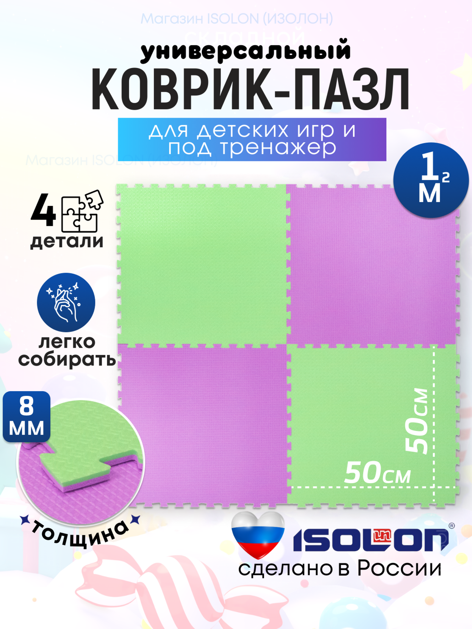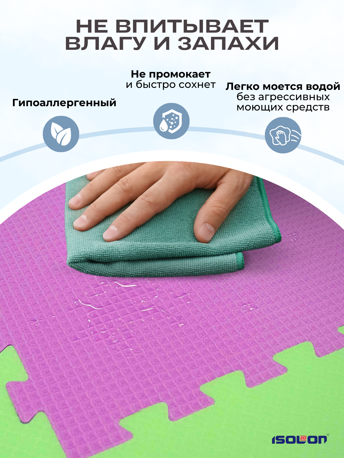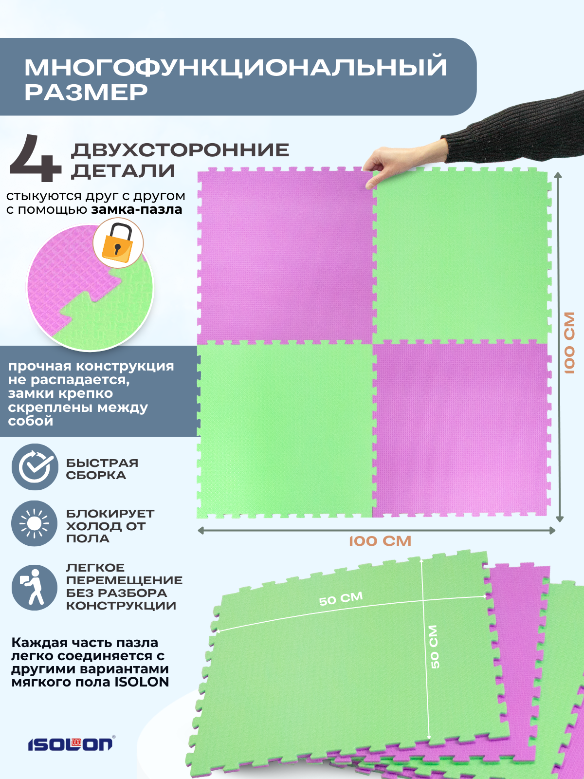 Купить Мат коврик-пазл мягкий пол Isolon, 50х50 см, в комплекте 4 шт, мятный/лавандовый