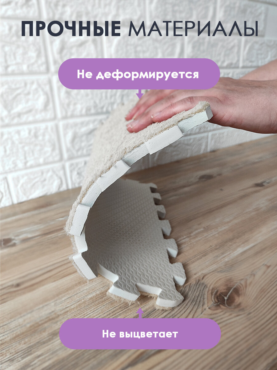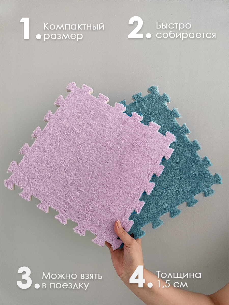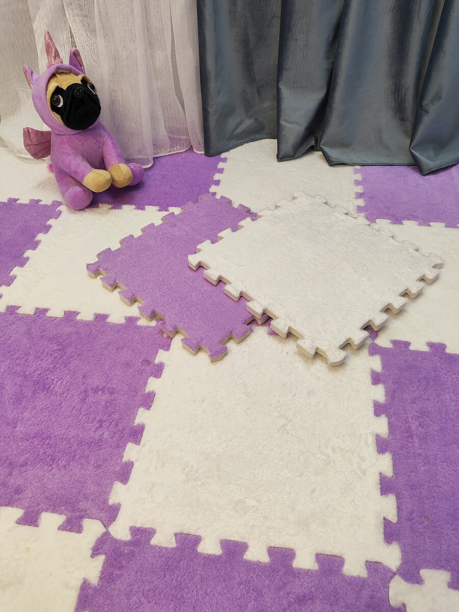 Коврик пазл детский мягкий с ворсом плюшевый, 10 деталей, толщина 1,5 см, сиреневый интересное: