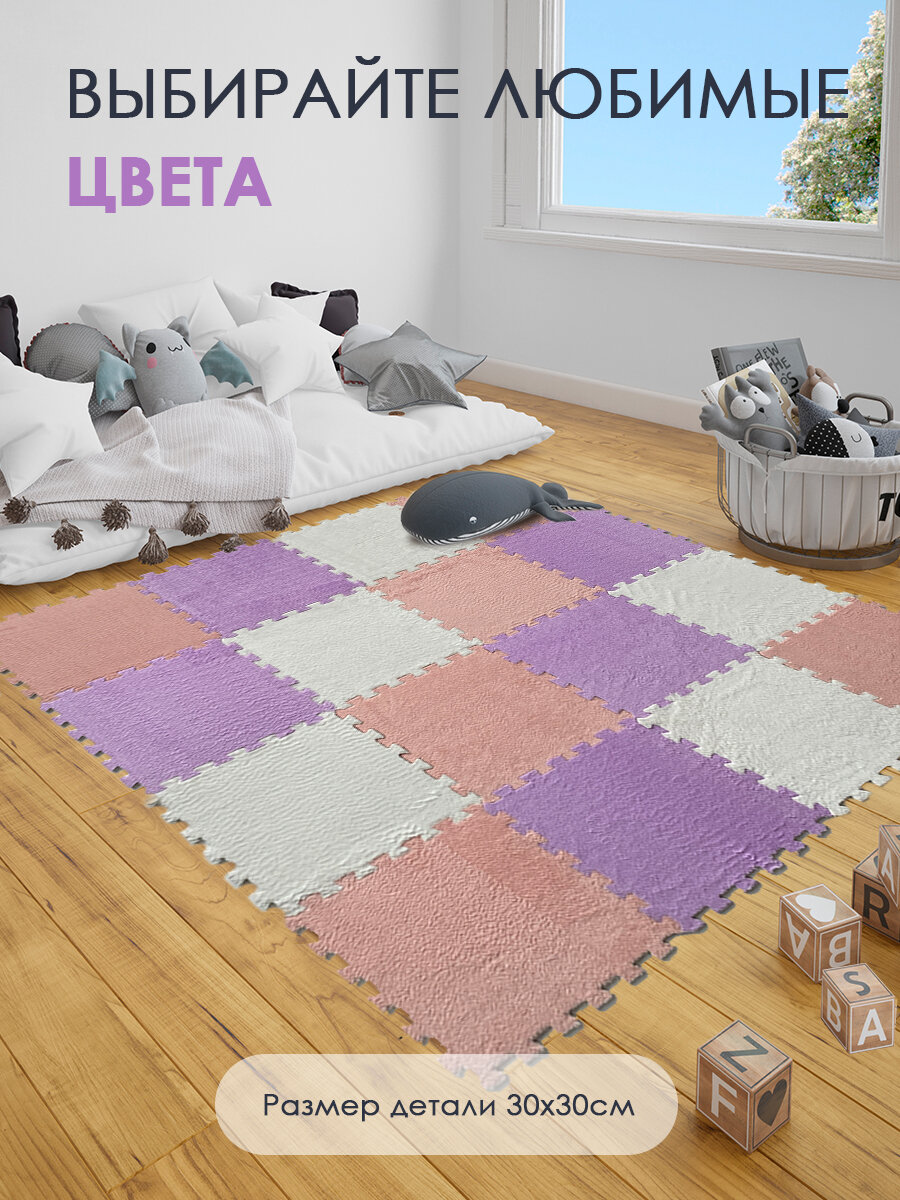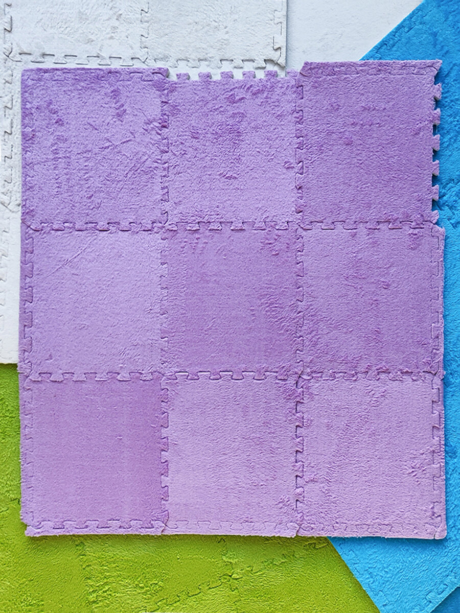 Купить Коврик пазл детский мягкий с ворсом плюшевый, 10 деталей, толщина 1,5 см, сиреневый