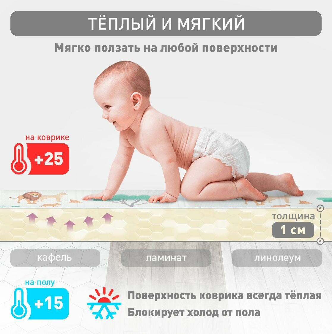 Коврик детский для ползания 180x200 MIKMEL Premium "Сафари/Горы" интересное:
