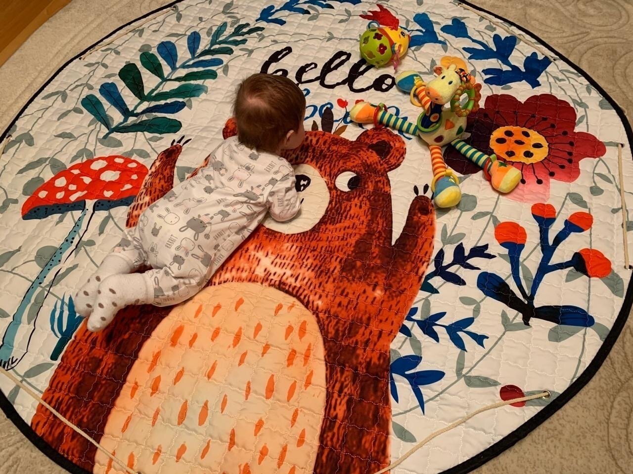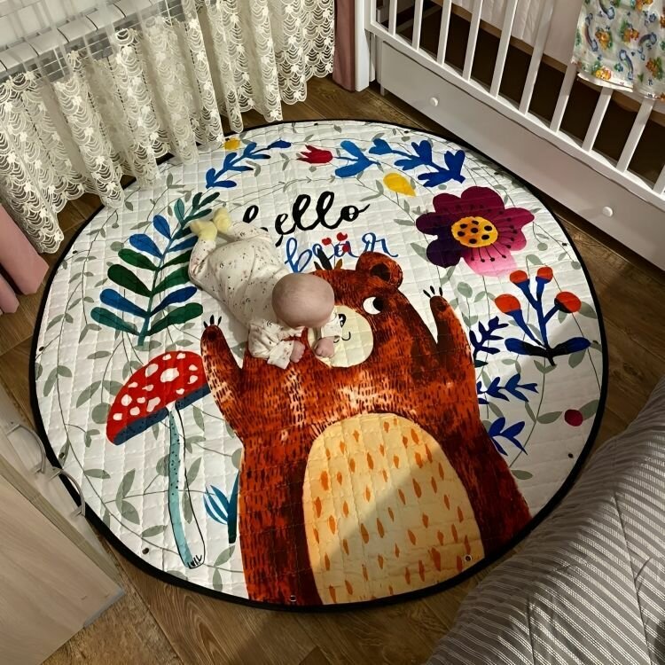 Коврик детский для ползания малыша - мешок для хранения игрушек, диаметр 150 см, "Мишка" интересное:
